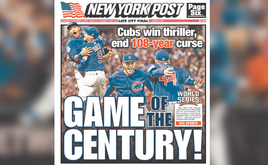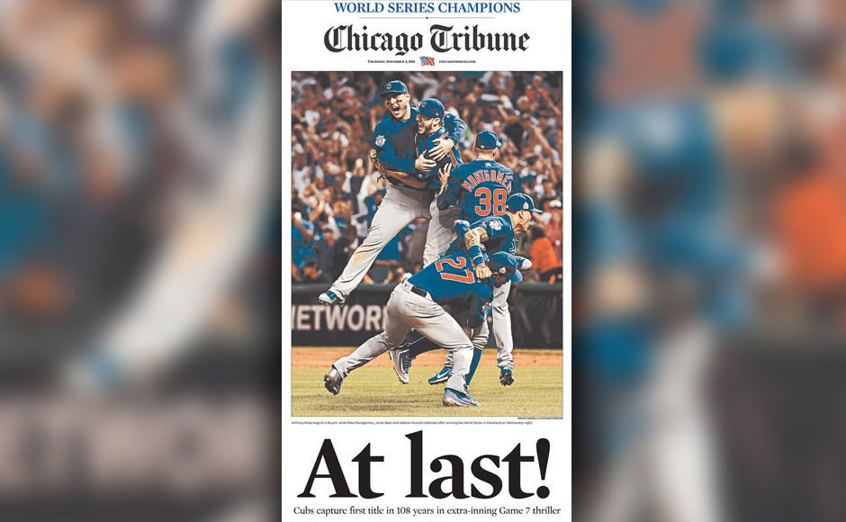 Here’s a roundup of how news outlets in the United States celebrated the Chicago Cubs epic World Series win over Cleveland Indians.