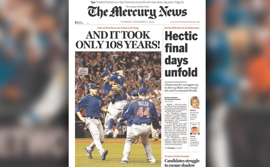 'A century in the making': Newspapers go crazy after Chicago Cubs' World Series win