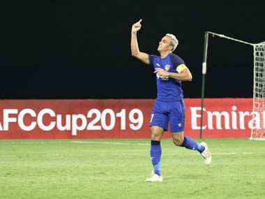 Ahmedabad: Chennaiyin FC notched up their maiden win in the AFC Cup with a 2-0 victory over Nepal’s Manang Marshyangdi Club to move to the top of their group on Wednesday. [caption id=“attachment_6468301” align=“alignleft” width=“380”]  Mailson Alves celebrates after scoring. Twitter@AFCCup[/caption] The match at the TransStadia Arena also saw the former Indian Super League champions scoring their first goal of the AFC Cup after their goal-less stalemate against I-League side Minerva Punjab in their opening Group E match. After a scoreless opening 45 minutes, Chennaiyin’s overseas players Chris Herd (51st) from Australia and Brazilian Mailson Veriato (53rd) scored early in the second half to secure all three points. Chennaiyin had their first sight on goal just after the five-minute mark but Jeje Lalpekhlua saw his effort from 10 yards deflected narrowly wide. Although the home side dominated the possession in the ensuing 25 minutes, they struggled to create clear-cut chances, but Mohammed Rafi shot just wide from the centre of the area after being picked out by Renthlei Laldinliana’s low cross from the right shortly after the half hour mark. The visitors had a rare sight on goal in first-half stoppage time but Sujal Shrestha curled his free-kick from 25 yards into the arms of goalkeeper Karanjit Singh as the sides went in for the breather on equal terms. John Gregory’s Chennaiyin again came out stronger after the interval and broke the deadlock in the 51st minute when former Aston Villa player Herd’s attempt from 20 yards deflected off Saheed Azeez and looped over goalkeeper Bishal Shrestha into the back of the net. The home side then doubled their advantage almost immediately after when captain Mailson headed home Anirudh Thapa’s corner from the right to open up a two-goal lead. Manang came close to pulling one back midway through the half but Abishek Rijal’s looping header went just over the bar after the substitute had been picked out with an inch-perfect ball over the top from Gurung Heman. Rijal was again unlucky late on when his acrobatic effort following Kamal Shrestha’s delivery was tipped wide by custodian Singh as the Nepalese side were condemned to back-to-back defeats. Chennaiyin now sit above Abahani Limited Dhaka on goal difference after the Bangladesh side drew 2-2 with Minerva Punjab in Wednesday’s other Group E clash. Chennaiyin and Abahani will face off in two weeks’ time in the first game of a crucial double-header, while Manang return to India to take on Minerva as they look to keep their qualification hopes alive.