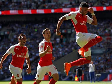 London: Arsenal manager Arsene Wenger claimed victory over Chelsea counterpart Jose Mourinho at the 14th attempt as Alex Oxlade-Chamberlain’s goal gave the FA Cup winners a 1-0 win in Sunday’s Community Shield. The England midfielder struck in the 24th minute at a sun-soaked Wembley Stadium to break Mourinho’s longstanding hold over his French rival and give Arsenal hope of a sustained assault on Chelsea’s Premier League title. [caption id=“attachment_2376106” align=“alignleft” width=“380”]  Arsenal’s English midfielder Alex Oxlade-Chamberlain (R) celebrates scoring the opening goal of the FA Community Shield. AFP[/caption] While Chelsea improved in the second half, they could not find a way past their former goalkeeper Petr Cech, who registered a clean sheet as his new club secured their 13th outright Community Shield. “It’s good because in pre-season we were very solid defensively, so it’s a good base to go into the championship,” Wenger told BT Sport. “We have good spirit and I believe we look dangerous.” Wenger will be mindful that a 3-0 win over Manchester City in last season’s Community Shield was not followed by a convincing title bid, but with Cech already looking at home and Mourinho no longer able to boast a spotless record against him, he will approach next weekend’s opening league fixtures with pre-season belief fully intact. Mourinho protested that Chelsea had been “the best team”. “Arsenal defended with 10 players, they put everybody in front of their own line and they had good organisation,” he said. “Congratulations to them. They had a couple of chances in counter-attacks, but we had ours in organised football.” Chelsea’s team-sheet suggested that Diego Costa is not yet free of the hamstring problems that plagued him last season, with Loic Remy leading the line in the Spain striker’s absence and new signing Radamel Falcao on the bench. Questions about the reaction that Cech would receive from the fans of his old club were answered quickly, a standing ovation greeting him as he jogged over to the goal at the Chelsea end prior to kick-off. Not for the first time, Wenger is embarking on a season with a surfeit of midfielders and he unveiled a new shape here that saw Oxlade-Chamberlain and Santi Cazorla line up on either flank, allowing Aaron Ramsey to take up his favoured central role alongside Francis Coquelin. Hazard squanders chance With Mesut Ozil shadowing lone striker Theo Walcott, who signed a new four-year contract on Friday, Arsenal were able to cluster men around the ball both in and out of possession, swarming around Chelsea’s midfielders to win the ball back before zipping quick passes between each other. After Walcott had worked Thibaut Courtois with a header, he created Arsenal’s opener with a pass wide to Oxlade-Chamberlain, who cut inside Cesar Azpilicueta and lashed home left-footed. It was Arsenal’s first goal against Chelsea in 506 minutes of football. A quiet showing from Eden Hazard left it to Ramires to drive Chelsea forward, the Brazil international curling wide from distance and heading a cross from Remy over the bar. But there was greater thrust to Arsenal’s attacks and Ramsey threatened to add a second when he slammed a shot into the side-netting. Remy, caught offside four times in the first half, gave way for Falcao at half-time and Oscar entered the fray shortly after in place of his countryman Ramires. The changes revived Chelsea and after Oscar had dragged wide, Cesc Fabregas gave Hazard a clear sight of goal with a slide-rule pass, only for the off-key Belgian to blaze wastefully over from eight yards. Cech was finally tested in the 69th minute, springing to his right to palm a free-kick from Oscar behind, which drew an approving roar from Arsenal’s supporters. Moments earlier Olivier Giroud, a replacement for Walcott, had slid a cross from Oxlade-Chamberlain over the bar and he was to spurn an even better chance, prodding Ramsey’s right-wing cut-back over the top. Cech also had to field a header from Chelsea substitute Kurt Zouma, but the best late openings fell to Arsenal, only for Courtois to save alertly and impressively from first Cazorla and then Kieran Gibbs. AFP