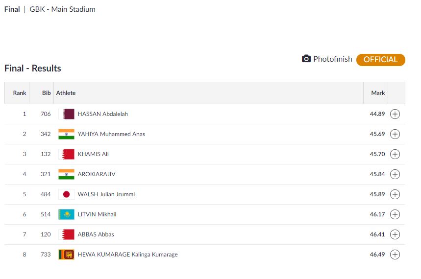 Asian Games 2018, Day 8, Latest update: Jindapol makes it 1-1! It’s one game apiece between Jindapol and Sindhu. The Thai shuttler comes from behind to win the second stanza and force a decider. Day 7, report: Tejinder Pal Singh Toor set aside the disappointment of not being able to attend his cancer-ridden father, shattering the Asian Games record to open India’s gold medal account even as several national records tumbled on the opening day of the athletics competition. He threw the iron ball to 20.75m, obliterating a six-year-old national mark, set by Om Parkash Karhana (20.69). The previous Games record was 20.57, set by Sultan-Al Hebshi from Saudi Arabia at the 2010 Guangzhou Games. Toor was the front-runner for the gold in men’s shot put as he had entered the event as the best athlete on display this season with a throw of 20.24m, achieved at the Federation Cup in Patiala. The winning throw came in the fifth attempt though he was leading the field with his first throw of 19.96m. China’s Liu Yang won silver with a season-best effort of 19.52, ahead of Kazakhstan’s Ivan Ivanov (19.40m). Tejinder, who left behind an ailing father, who is battling cancer, said all the sacrifices have paid today. “This medal is my biggest achievement because a lot of sacrifices have been made. For the last two years, my father (Karam Singh) has been battling with cancer. My family though never let me get distracted. They allowed me to chase my dream. A lot of sacrifices have been made by my family and friends and all those have paid today,” he said. “My family never pressurized to attend my father in the hospital and it was always my friends who took care of all the hospital formalities in my absence. I have not gone home much in this period since I was training in Dharamsala,” the burly athlete, who trains with MS Dhillon, said. India’s rising star Hima Das qualified for the 400m final with a new national record as she timed exact 51.00s breaking a 14-year-old record set by Manjit Kaur (51.05s) in Chennai in 2004. Hima ran with Bahrain’s Salwa Naser, who is favourite to win this event and won the Heat 1 with a new Games record. Also qualifying for the 400m final was Nirmala Sheoran, who stood fourth overall with a timing of 54.09s. It was the best effort in Heat 3. National champion Dutee Chand, competing in her first big event after winning her gender case at the CAS, qualified for the semifinals of the women’s 100m with a timing of 11.38. Running in lane 4, Dutee edged out Kazakhstan’s Olga Safronov (11.46) and Uzbekistan’s Nigina Sharipova (11.59) to win Heat 2. The effort was slightly slower than her national record (11.29) and the timing of 11:32 with which she had won gold at the National Games. With seven laps to go, Suriya was behind runners and Sanjivani was also struggling to catch up. Asian champion Mohammed Anas also emerged as a strong gold medal contender in the men’s 400m by qualifying for the final with a timing of 45.30s. It was the fastest time in the semifinal. Anas cut down on his timing from the Heats as he had clocked 45.63 in the morning session. Arokia Rajiv also joined him in the final by clocking 46.08 in the semifinals. Chasing Anas are Mohammed Abbas (45.59), Abdalellah Hassan (45.83). There was more good news for the Indian camp with Chetan Balasubramanya qualifying for the final of the high jump by clearing 2.15m but none of the 13 qualifiers could qualify with the automatic qualification mark set at 2.20m. Chetan began with 2.05m and easily cleared the jump. After clearing 2.10m, he cleared 2.15 in his second attempt. Making to the final of the long jump was Sreeshankar with an effort of 7.83m, which was fourth best today behind Yuki Hashioka of Japan (8.03m), Jianan Wang (7.89) and Yaoguang Zhang (7.84) of China. There was, though, disappointment for Sarita Romit Singh, who finished fifth in the hammer throw after clearing a distance of 62.03m, which was way behind than podium finishers N Luo (71.42), Z Wang (70.86) and H Katasuyama (62.95) In the women 10,000m, Suriya Loganathan (32:42.08) and Sanjivani Baburao (33:13.06) faded towards the end to finish sixth and ninth respectively. With inputs from PTI
