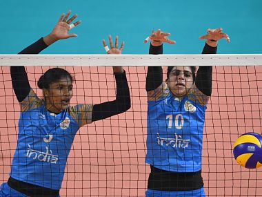 Jakarta: The Indian women’s team ended its campaign at the 18th Asian Games, losing 0-3 to China in the last Pool B match of the volleyball competition in Jakarta on Monday. [caption id=“attachment_5054721” align=“alignleft” width=“380”] India’s Nirmala and Anju Balakrishnan defend the net against Kazakhstan during the women’s group B preliminary volleyball match at the 2018 Asian Games in Jakarta. AFP[/caption] In a 67-minute match, India lost 18-25, 19-25, 9-25 to China, who remained unbeaten in the pool stage. It was India’s fifth straight loss at the Games. The Indian men’s team will take on Pakistan in the quarterfinals for 7-12 classification places on Tuesday. The Indian men’s team finished in the second spot in pool F after winning against Hong Kong and Maldives. They lost only to Qatar in the league stage.