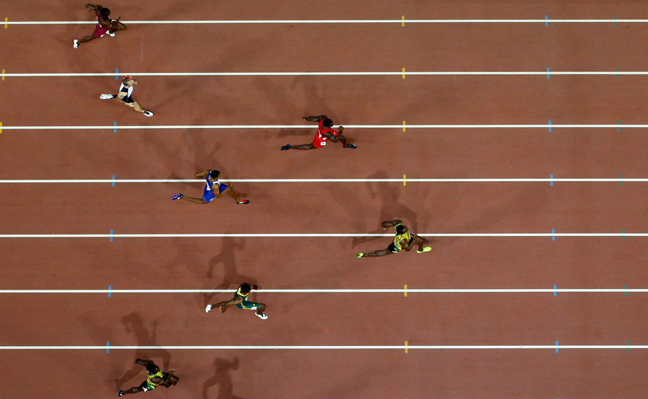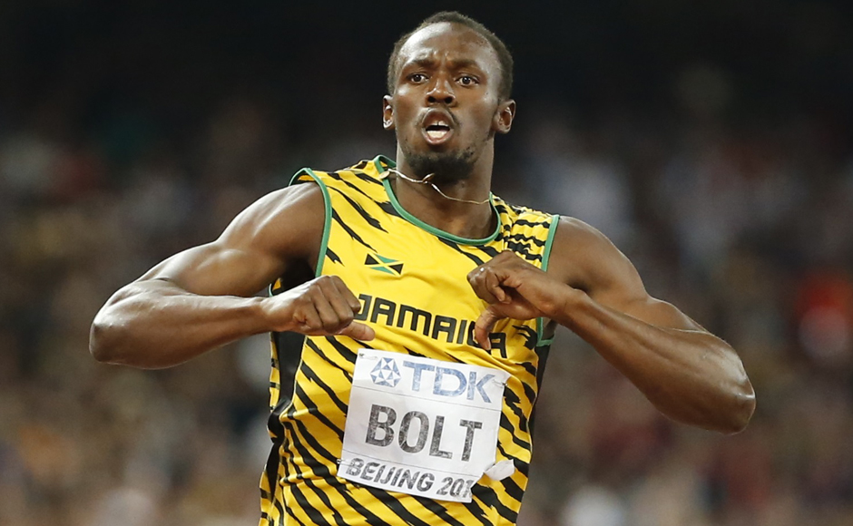 Usain Bolt of Jamaica reacts after winning the men’s 200m final during the 15th IAAF World Championships at the National Stadium in Beijing, China August 27, 2015. REUTERS/Lucy Nicholson TPX IMAGES OF THE DAY