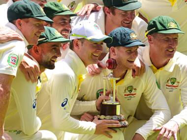Jamaica: Australia maintained their dominance over the West Indies with a crushing 277-run victory on the fourth day of the second test in Jamaica on Sunday to claim a 2-0 series win. They have not lost to the West Indies in 14 tests dating back to 2003, winning 11 and drawing three and the gulf between the sides looked wider than ever as the hosts were bowled out for 114 in their second innings. [caption id=“attachment_2296586” align=“alignleft” width=“380”]  Australians pose with the Frank Worrell trophy after routing Windies 2-0 at Sabina Park. AFP Photos.[/caption] Australia, who won the first test in Dominica by nine wickets last week, outplayed their hosts not just with bat and ball, but also in the field. West Indies were already in a hopeless position at the start of the day’s play and Australia ruthlessly wrapped up the win, taking eight wickets in 34 overs. Australia off-spinner Nathan Lyon completed the rout when he clean bowled Jerome Taylor for a golden duck. Steve Smith was named man of the match after making 199 in the first innings, while right-arm fast bowler Josh Hazlewood was voted man of the series. He took 12 wickets at an average of 8.83. “The new ball is key on these types of wickets,” Hazlewood said at the victory presentation. “There was always something there if you put the ball in the right areas.” Captain Michael Clarke had declared his side’s second innings late on Saturday to set West Indies a 392-run victory target with more than two days left. But his boldness paid off and he was full of praise for his bowlers. “What they’ve done really well is executed their skill over long periods of time, the whole attack,” Clarke said. “Our goal is to be more consistent away from home, so a really good start in these two test matches. We’ll enjoy tonight and then look forward to what’s ahead.” The way Australia brushed past a West Indies side that drew a recent series with England will serve as a confidence booster ahead of the Ashes which starts in three weeks in Cardiff. West Indies resumed at 16 for two and lost five wickets in another feeble session for the addition of 56 runs before lunch. Shane Dowrich (4), Darren Bravo (11), Jermaine Blackwood (0), Shai Hope (16) and Jason Holder (1) all fell. Denesh Ramdin (29) offered some resistance after lunch but Kemar Roach and Taylor were out in quick succession. The Australian attack shared the spoils, with Mitchell Starc claiming three wickets, while fellow quicks Hazlewood and Mitchell Johnson, and Lyon, collected two each. Medium-pacer Shane Watson chipped in with the other wicket. REUTERS