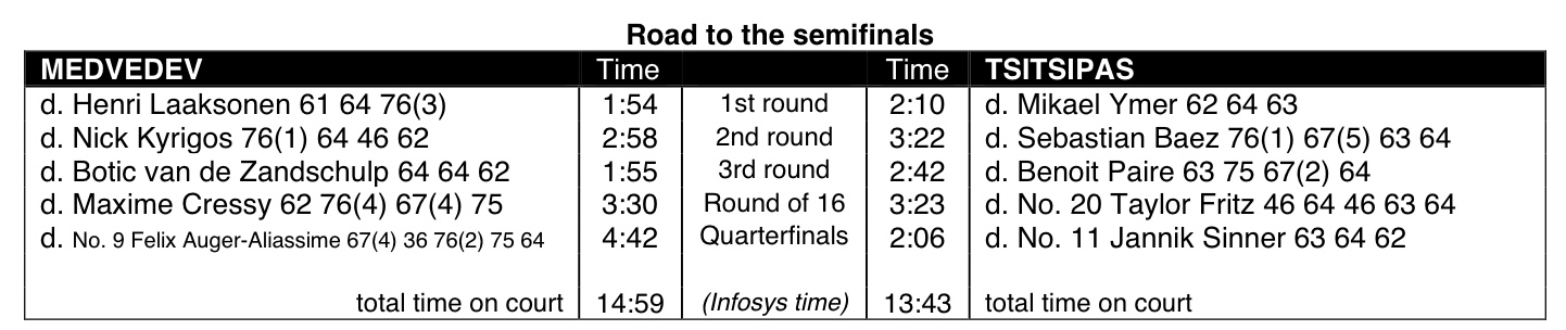 Preview: Even before he hit his first ball at this year’s Australian Open, Rafael Nadal knew he had an open door to set the men’s record for most career Grand Slam singles titles. So far he hasn’t let it close. Nadal plays Matteo Berrettini in one semifinal on Friday at Melbourne Park, knowing he’s potentially two match wins from a 21st major title. He’s tied for the record of 20 with Roger Federer, who is recovering from right knee surgery, and Novak Djokovic, who was deported from Australia on the eve of the tournament following an 11-day visa saga over his decision not to be vaccinated for COVID-19. In the other semifinal, Daniil Medvedev plays Stefanos Tsitsipas in a rematch of their 2021 Australian Open semifinal. Medvedev won last year’s semifinal, then lost to Djokovic in the final. After Nadal’s tough five-set win over Denis Shapovalov on Tuesday, he looked to take away some of the pressure of that 21st major. “I don’t believe that my happiness, my future happiness is going to depend on if I achieve one more Grand Slam than the others, or if the others achieve more Grand Slams than me,” Nadal said. “For me, the fact that we are equal at 20 … the only thing that says is that we share an amazing part of the history of our sport, and for me it’s a real honor to be part of it.” Nadal spoke highly of Berrettini, among the players like Tsitsipas and Shapovalov who could replace the Big Three who have dominated the sport for nearly 20 years. “Matteo, he’s one of the best players of the world,” Nadal said. “I need to play my 100% and my highest level if I want to keep having chances to fight, to be competitive, and to try to be in the final.” The pair have only played once — Nadal beat the Italian in the semifinals of the 2019 U.S. Open in straight sets. Berrettini has matured since, having lost the Wimbledon final last year to Djokovic in four sets. Nadal gives a decade in age to Berrettini — 35 to 25. U.S. Open champion Medvedev will have to overcome the fatigue from a late-night, 4 hour, 42-minute, five-set comeback win over Felix Auger-Aliassime on Wednesday. The 25-year-old Russian has a 6-2 lead in career meetings with Tsitsipas, although the Greek player beat Medvedev in straight sets the last time they met in last year’s French Open quarterfinals. Tsitsipas advanced to the semis here in much easier fashion, beating Jannick Sinner in straight sets in an afternoon quarterfinal. Medvedev is two wins away from becoming the first man in the Open era to win his second Grand Slam in the next major tournament after his first. He wasn’t aware. “Actually, I didn’t know this stat . . . it’s a great challenge,” Medvedev said in a news conference after his quarterfinal win. “It will be history.”