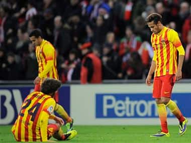 An ineffectual Barcelona crashed to their first La Liga defeat of the season and failed to restore their three-point lead over Atletico Madrid at the top when they were beaten 1-0 at Athletic Bilbao on Sunday. Barca were again without the injured Lionel Messi, who is not expected back until mid-January, and turned in one of their worst performances of the campaign against a fired-up Bilbao at the Basque club’s new San Mames stadium. A miserable week for the Spanish champions, which included Tuesday’s 2-1 Champions League loss at Ajax Amsterdam, went from bad to worse when Bilbao forward Iker Muniain stole in to net from close range in the 71st minute. Barca barely mustered a shot on target against the Basques, with Brazil forward Neymar particularly disappointing, and it was only the second time in 15 matches this season they have dropped points after the 0-0 draw at Osasuna in October. [caption id=“attachment_1261215” align=“alignleft” width=“380”]  Another loss for Barceloan, this time in the league. AP[/caption] Gerardo Martino’s side are level with Atletico on 40 points following the Madrid club’s 2-0 win at promoted Elche on Saturday, while Real Madrid, whose 4-0 drubbing of Real Valladolid on Saturday included a hat-trick from record signing Gareth Bale, are three points further back in third. Bilbao ended a streak of 14 winless La Liga games against Barca and beat them for the first time since May 2006 to climb above Villarreal into fourth on 29 points. “It was an open game against a great opponent who pressed us hard and knows how to play,” Barca midfielder Sergio Busquets said in a pitchside interview with Spanish television broadcaster Canal Plus. “They had their moments and we had ours but if we don’t take our chances then it becomes harder,” added the Spain international. “All we can do is congratulate Athletic and carry on because there is no other choice. “We have to learn from the mistakes we made, which for sure were numerous, but also from the positives.” LITTLE IMPACT Without World Player of the Year Messi creating havoc in the forward line, Barca lacked a cutting edge against a well-organised Bilbao unit. Neymar forced a superb save from home goalkeeper Gorka Iraizoz in the 12th minute but the Basque side refused to allow the Barca players time and space, creating several clear chances in the first period. They came close when a deflected cross fell to Muniain and he scuffed his close-range shot straight at goalkeeper Jose Manuel Pinto, playing in place of the injured Victor Valdes. Cesc Fabregas played Neymar through five minutes after the break but the Brazil forward, who had to change his boots in the first half after slipping over several times, sliced his effort well wide. Bilbao, who thoroughly deserved their victory and are unbeaten at home this season, almost doubled their lead four minutes after Muniain’s goal when Pinto produced a brilliant save from Gaizka Toquero’s unchallenged header. Martino threw on Pedro late on but the Spain forward made little impact and Bilbao comfortably held on to their lead. Argentine Martino, who took over from the ailing Tito Vilanova in the close season, complained that the referee should have sent Bilbao midfielder Ander Iturraspe off just before the hour after he felled Neymar when he was through on goal. Iturraspe escaped with a caution, prompting furious protests from the Barca players. “The incident could have changed the course of the match,” Martino told a news conference. “I think up to the 70th minute we were superior on the pitch but after that it was a different game. “We had moments when we had a great deal of control but what we were lacking perhaps was the precise final pass.” QUICKFIRE TREBLE In the earlier kickoffs, pressure eased on Valencia coach Miroslav Djukic when a quickfire hat-trick from forward Jonas gave his erratic side a 3-0 win at home to 10-man Osasuna. Osasuna had their 38-year-old captain Patxi Punal sent off in the 16th minute for a dangerous late tackle on Dani Parejo before Jonas struck from close range just before the break. The Brazilian netted his second three minutes into the second half and made it 3-0 in the 53rd minute as Valencia moved up to ninth on 20 points. Sevilla kept in touch with the European qualification places when they won 2-1 at Andalusian rivals Granada and tightened their grip on eighth with 22 points. Sevilla’s city rivals Real Betis drew 2-2 at home to fellow strugglers Rayo Vallecano and stay rooted to the bottom.