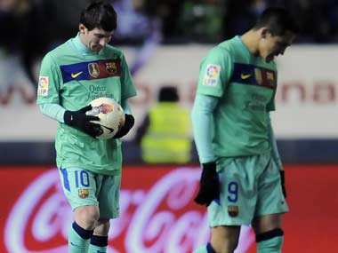 Leverkusen, Germany: With hopes of a fourth consecutive Spanish league title fading, Barcelona is turning its full attention to defending its European crown — which is bad news for Bayer Leverkusen. Both sides are having domestic troubles going into their meeting in Tuesday’s Champions League round of 16 first-leg match, but it is arguably Barcelona which has more to prove. Saturday’s 3-2 loss at Osasuna, coupled with Real Madrid’s 4-2 win over Levante on Sunday, left the defending Spanish champion 10 points behind its bitter rival, which has dropped only eight points all season. “We’ll go to Europe to defend our title,” Barcelona coach Pep Guardiola said. Leverkusen has problems of its own, having claimed only one win in its last seven games while the club is at odds with its midfielder Michael Ballack. The former Germany captain hasn’t played for Leverkusen since managing director Wolfgang Holzhaeuser described his transfer back to the club as a “failure.” [caption id=“attachment_211553” align=“alignleft” width=“380” caption=“Saturday’s 3-2 loss at Osasuna, coupled with Real Madrid’s 4-2 win over Levante on Sunday, left the defending Spanish champion 10 points behind its bitter rival. AP”]