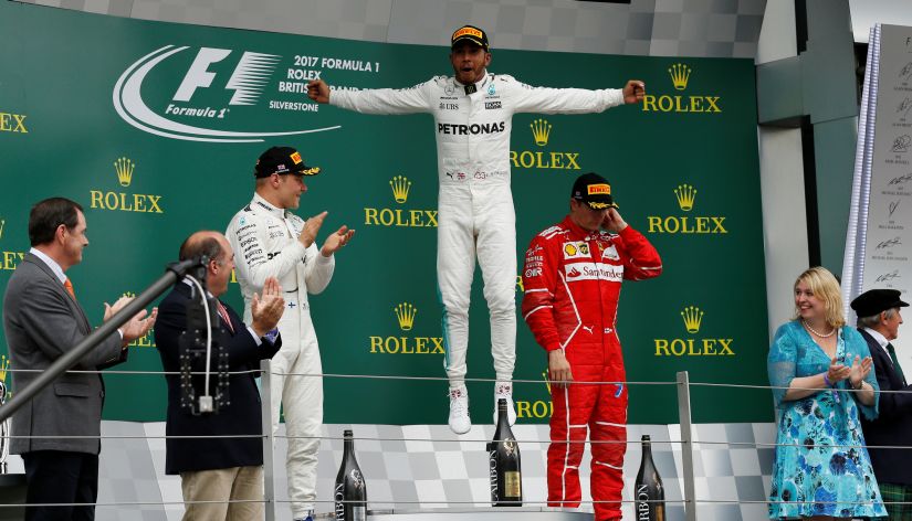 He came, he raced and he crowd-surfed his way to the top step of the podium — that’s Lewis Hamilton’s British Grand Prix in a nutshell. The enfant terrible of Formula 1 was back in top form, streaking away from his competitors and effortlessly taking home top honours. Behind Hamilton, though, the order was as unpredictable as the notorious British weather. In what was a surprising blow, Mercedes’ rivals Ferrari suffered an unbelievable double-tyre blowout at the fag-end of the race. The King of Silverstone ‘Hammer Time’ struck swiftly and strongly at Silverstone — long at last, after failing to reach the podium in Azerbaijan and Austria. He managed to blow his week of controversy with an outstanding show. All through the weekend, Hamilton was in top form, storming to pole and then securing a lights to flag victory. Hamilton won for the fourth consecutive time at the British Grand Prix (and fifth time overall), equalling the record of Jim Clarke and Alain Prost. So much so that Hamilton couldn’t help cheekily declare to the world media that he performs so well at Silverstone because “he owns the circuit”. [caption id=“attachment_3823499” align=“alignnone” width=“825”]