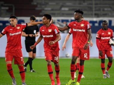 Berlin: Leverkusen boosted its Champions League hopes while extending Schalke’s lengthy winless run in the Bundesliga with a 1-1 draw on Sunday. A VAR penalty call looked to have put Schalke on course for its first victory at the 13th attempt, but Juan Miranda’s late own-goal was enough for Leverkusen to move fourth — the final spot for Champions League qualification. [caption id=“attachment_8483721” align=“alignleft” width=“380”]  Bayer Leverkusen are in fourth sport, one point ahead of Borussia Monchengladbach. AP[/caption] Leverkusen is a point ahead of Borussia Monchengladbach, which lost 2-1 to league leader Bayern Munich on Saturday, with three rounds left to play. Leverkusen defender Edmond Tapsoba was penalized for handball early in the second half when Johnjoe Kenny’s cross struck his arm under contact from the incoming Miranda, whose knee moved Tapsoba’s arm. Referee Daniel Siebert gave the penalty after consulting video replays. Daniel Caligiuri converted the spot kick to give Schalke a 51st-minute lead. But Caligiuri’s weak challenge allowed Wendell through to set up Leverkusen’s equalizer in the 81st. Miranda tried to stop Paulinho from scoring but ended up poking the ball past his own goalkeeper. Leverkusen goalkeeper Lukas Hradecky made a great save to deny Michael Gregoritsch in the last play of the game. Earlier, Florian Niederlechner’s first-minute goal was enough for Augsburg to win in Mainz 1-0 and ease its relegation worries. The visitors moved four points clear of Mainz and seven points above the relegation zone. The games were played without fans and amid strict hygiene measures to reduce the risk of coronavirus infections.