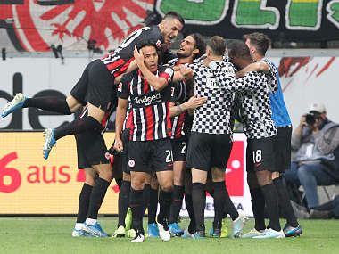 Frankfurt’s team celebrates the 2-2 during their Bundesliga match against Eintracht Frankfurt. AFP[/caption] Dortmund twice took the lead but surrendered an equaliser on 88 minutes, failing to deal with two crosses before Japan midfielder Daichi Kamada forced Thomas Delaney to turn the ball into his own net. The draw left Dortmund third, three points behind Leipzig and one adrift of defending champions Bayern Munich, who thrashed Cologne 4-0 on Saturday. Unbeaten Leipzig won 3-0 at Werder Bremen. In Frankfurt, goals by Belgium midfielder Axel Witsel and England winger Jadon Sancho either side of an Andre Silva equaliser left Dortmund 2-1 up with full-time approaching before Delaney’s costly own goal. Dortmund captain Reus could not hide his frustration. “We are not seeing the thing through,” the Germany international told Sky, bristling when asked if his team had a “mentality problem”. “Stop asking about this mentality shit – it’s crap and it’s the same questions every week.” Dortmund head coach Lucien Favre kept the same starting line-up which drew 0-0 at home to Barcelona in the Champions League in midweek. Germany boss in stands Germany head coach Joachim Loew was in the stands amid calls from both German legend Lothar Matthaeus and Favre that Mats Hummels should be recalled to the national squad. Hummels, deemed to be past his prime by Loew last March, was outstanding against Barcelona and marshalled the back four in Frankfurt before being replaced on the hour due to a back injury. His experience was badly missed in the dying stages. Dortmund made a bright start when Witsel picked out the bottom corner with 11 minutes gone, but a lapse in concentration let Frankfurt back in just before the break as Silva levelled. Witsel added an assist to his earlier goal as he latched onto the rebound after Raphael Guerreiro’s free-kick was saved by Kevin Trapp, teeing up Sancho to tap in his third league goal of the season on 66 minutes. Sancho made way for Germany winger Julian Brandt soon after with Eintracht already pushing for an equaliser before Kamada’s volley was diverted in by Delaney. Earlier, French under-21 striker Marcus Thuram came off the bench to score twice in Borussia Moenchengladbach’s 2-1 win over Fortuna Duesseldorf. Hosts Gladbach crashed to a shock 4-0 defeat at home by Austrian side Wolfsberg in the Europa League on Thursday and were heading towards a second loss in four days at Borussia Park before Thuram intervened. Ghana defender Kasim Adams gave Duesseldorf a first-half lead, but Thuram turned the game by converting a cross seven minutes after coming on and then tapping home the late winner from a goalmouth scramble. They were Thuram’s first Bundesliga goals in only his fifth game since signing from French second-division club Guingamp in July for nine million euros ($9.9m). Gladbach’s third win in five games kept them three points back of Leipzig as one of five teams level on 10 points. Fortuna dropped to 12th.