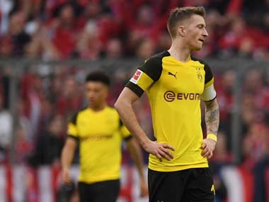 Borussia Dortmund captain Marco Reus pictured during the match against Bayern Munich. Reuters[/caption] Bayern reclaimed top spot with their emphatic victory on Saturday, but they remain only a point ahead of Dortmund with six games to go. “Of course we want to win the league,” said Watzke during a Sky Sports chat show appearance with his Bayern counterpart Karl-Heinz Rummenigge, adding, “in a few days, Bayern will notice that they only got three points for their win, and we will realise that we are only a point behind them.” Watzke admitted Dortmund were now underdogs but insisted that his team could bounce back and keep the pressure on the Bavarians. “Bayern are obviously favourites, but I don’t think that both teams are going to win all of their last six games. Our team has enormous potential, and it will be part of the learning curve to put this victory behind us,” he said. “The players need to enjoy playing again and have fun, because yesterday was not fun,” he added. Watzke said that the fact that his team were still in the race at all at this stage was “a great success”. “This is only the third time in a decade that we have a title race in the Bundesliga. If we have to congratulate Bayern on the last day of the season, then we will do so,” he said. Bayern chief executive Rummenigge, meanwhile, said he was now confident that his team would claim a seventh successive Bundesliga title. “We will win the league. We have big goals, and we are in a promising position in both domestic competitions, so our aim is to win the double,” he said. “There were definitely weeks which didn’t go so well for us this season. In the last six games, we need to play as we did yesterday,” he declared.
