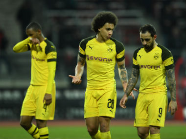 Berlin: Bundesliga leaders Borussia Dortmund dropped more points in the title race on Monday when they were held to a goalless draw at bottom side Nuremberg. [caption id=“attachment_6110081” align=“alignleft” width=“380”] Borussia Dortmund’s Paco Alcacer and Axel Witsel look dejected at the end of the match. Reuters[/caption] Dortmund are now just three points ahead of second-placed Bayern Munich, the defending champions who won 3-2 at Augsburg on Friday, with their lead slashed from nine points after drawing their last three league games. “That was definitely too little from us, we have to pick up points again,” said forward Mario Goetze. “They didn’t make it easy for us by standing deep, but we must improve.” Even without injured playmaker Marco Reus, plus defenders Lukasz Piszczek and Manuel Akanji, this was another below-par display from the league leaders. Nuremberg were hammered 7-0 at Dortmund last September, but this was a vastly improved display from the hosts and the draw was celebrated like a win on the home bench. It was their first game under caretaker coaches Marek Mintal and Boris Schommers after both head coach Michael Knoeller and director of sport Andreas Borneman were sacked last week. The hosts deserve tremendous credit for battling as their captain Hanno Behrens twice went close to giving his side a shock lead, but his first-half headers went over. Nuremberg’s goalkeeper Christian Mathenia, who made four saves in the first half from Goetze alone, repeatedly thwarted the visitors’ attack, but Nuremberg’s winless streak in the league has now been stretched out to 16 games. “No one gave us a chance going into this game which makes me even prouder that we picked up a point,” said Mathenia. Having crashed 3-0 at Tottenham Hotspur last week in the Champions League last 16, first-leg, Lucien Favre’s Dortmund again failed to score and are now winless in their last five games in all competitions. The first-half was twice halted to clear black tennis balls, thrown onto the pitch by fans in protest over the unpopular Monday night kick-off times in the Bundesliga which will be abolished for the 2021/22 season.