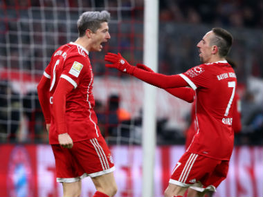 Berlin: Robert Lewandowski bagged his 15th goal in 16 league games as Bundesliga leaders Bayern Munich went nine points clear despite struggling to beat bottom side Cologne 1-0 on Wednesday. The Poland hot-shot has failed to score in only four of Bayern’s league matches this season and has netted 21 goals in all competitions. [caption id=“attachment_4257803” align=“alignleft” width=“380”] Bayern Munich’s Robert Lewandowski celebrates scoring their first goal with Franck Ribery. Reuters[/caption] However, Lewandowski came to the rescue as Bayern struggled for ideas against a Cologne team hit by injury. “We didn’t do enough and didn’t let the ball run,” Bayern captain Thomas Mueller complained to Sky. “You can’t attack against every opponent like we did in the second half – we have to do more.” With an hour gone at the sold-out Allianz Arena in front of 75,000, Bayern broke the deadlock when Mueller flicked the ball with the back of his head into Lewandowski’s path to tap home. Bayern have won 13 of their 14 games since Jupp Heynckes replaced Carlo Ancelotti as coach at the start of October. In contrast, Cologne are waiting for their first league win of the season. Their club bosses are already planning for life in the second division with the team now 13 points from safety. In Gelsenkirchen, Schalke went second despite throwing away a two-goal lead in their thrilling 3-2 win at home to Augsburg. Argentinian striker Franco di Santo gave them the lead with a deft backheel on 44 minutes, then Austria striker Guido Burgstaller made it 2-0 just after the break. A header by Brazilian midfielder Caiuby and a Michael Gregoritsch penalty pulled it back to 2-2 on 79 minutes before Daniel Caligiuri converted the winning penalty for Schalke seven minutes from time. In falling snow in Berlin, veteran former Chelsea striker Salomon Kalou struck twice as mid-table Hertha Berlin won 3-1 against Hanover 96. The 31-year-old Ivory Coast striker headed home on 18 minutes, then got on the end of a free-kick a minute before the break to make it 2-0. Hanover scored a consolation goal through Togo forward Ihlas Bebou on 65 minutes before 20-year-old defender Jordan Torunarigha scored Hertha’s third. Argentina striker Lucas Alario claimed Bayer Leverkusen’s winner as they saw off Werder Bremen 1-0 to claim fourth. Earlier, striker Mark Uth fired Hoffenheim up to fifth as the hosts left it late in their 1-0 victory at home to VfB Stuttgart. The 25-year-old Uth tapped home on 81 minutes after good work by Czech right-back Pavel Kaderabek, who reacted quickest after Stuttgart defender Benjamin Pavard’s attempted clearance came back off the post.