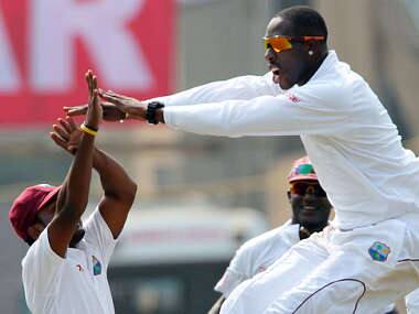 Scores level Ind 234-6 after 69 overs Sharma 65, Ashwin 39 Scores are level and from now on, India need to make the advantage count. The top order collapse had them in trouble but now they are in a position of great strength. Tea time Ind 229-6 after 68 overs Sharma 61, Ashwin 38 109 runs, 29 overs, 1 wicket in the session. India trail by just 5 runs with 4 wickets remaining in the first innings. They still need to be careful but when you consider that they were 83-5 at one stage, this is a brilliant comeback. Rohit and Ashwin have been brilliant – their 73-run stand has come in just 16.5 overs. West Indies have had no answer for the manner in which they two have scored the runs. Ashwin on the ball Ind 221-6 after 65 overs Sharma 55, Ashwin 36 Ashwin is easily out-scoring Virat and he is doing it by playing proper cricketing shots. A nice late cut in the last over from Permaul showcased his batting credentials again. The partnership is 65 runs in 13.5 overs. Ashwin shines again Ind 213-6 after 64 overs Sharma 55, Ashwin 28 West Indies need a wicket now or India might end up with a big advantage. They are ahead by just 21 runs now and India still have 4 wickets in hand. Rohit and Ashwin are both largely untroubled. Debut star Ind 198-6 after 61 overs Sharma 53, Ashwin 15 Rohit gets his fifty on Test debut and he looks good for plenty more. He has been patient – it took him 95 balls. Steady Ind 186-6 after 58 overs Sharma 47, Ashwin 10 India are inching closer with every run. West Indies seem to have run out of ideas with Shillingford getting a rest. Permaul has kept things very tight. Steady Ind 183-6 after 56 overs Sharma 46, Ashwin 7 Rohit has been looking very solid. He has managed to carry his ODI form into the Test arena too. A lot of people will say that he should have made his debut earlier but the time on the outside has done him good. He seems very well sorted now and in no hurry. Quick runs Ind 173-6 after 53 overs A flurry of runs in the last 11 balls has seen India eat away at the lead. West Indies are ahead by just 61 runs now. Dhoni falls Ind 156-6 after 51.1 overs WICKET! Big wicket for West Indies and potentially a match-changing ball. Dhoni didn’t move his feet and poked at the ball. The edge went straight to the keeper. Dhoni pretty livid with himself. M Dhoni c Ramdin b Best 42 (63b, 5x4) Closing in Ind 156-5 after 51 overs Rohit 31, Dhoni 42 The lead is down to India 78 runs now. India still have five wickets in hand and whittling down the target by taking a lot of singles. The ball is being changed now. It made a big difference in the Indian innings. Settling down Ind 148-5 after 49 overs Rohit 28, Dhoni 37 Suddenly the venom seems to have gone out of the bowling. But one wicket could change all that. Dhoni and Rohit are taking the singles and rotating the strike. The bowlers are constantly having to adjust their line and length. Dhoni keeps scoreboard ticking Ind 140-5 after 47 overs Rohit 23, Dhoni 34 Sammy has finally taken himself off. We have spin from both ends. The pari has already put on 53 runs – the highest partnership in the innings. There is the odd edge that flies off.. but India showing some fight here. Dhoni keeps scoreboard ticking Ind 131-5 after 42 overs Another bad over by Sammy. He needs to get his thinking cap on and get a regular bowler in from this end. Shillingford is bowling maidens from the other end. They need to keep the pressure up. India and Dhoni won’t mind – they still trail by 103 runs. Sammy to begin things again Ind 126-5 after 40 overs Play resumes after lunch and for some strange reason, West Indies open with Darren Sammy. The WI skipper is bowling at 120 km/h and there is no fear here. Dhoni helped himself to a four off the last ball of the over too. It’s lunch Ind 120-5 after 39 overs [caption id=“attachment_1216271” align=“alignleft” width=“380”]  Shillingford was the star for WI. BCCI[/caption] It’s lunch. Permaul finally came into the attack, one over before lunch. Surely West Indies would like to have spin from both ends for at least a while. Dhoni and Rohit have looked to play their shots but they need to be careful too. India trail by 114 runs with 5 wickets remaining in the first innings. 83-5 in the 27-over session. West Indies win this one. Just as they won the first one on Day 1 too. It’s 2-2 as far as sessions go.