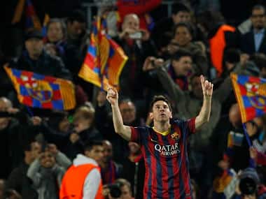 Barcelona: Lionel Messi struck to end Manchester City’s dreams of a famous comeback as Barcelona beat the English club 2-1 at the Nou Camp on Wednesday to reach the Champions League quarter-finals 4-1 on aggregate. Barca looked far from the classic team who lifted the trophy in 2009 and 2011 but a stuttering version under Gerardo Martino that had lost two of their last three games was still far too strong for the Premier League club. City, who lost the first leg of the last-16 tie 2-0 at home, were a constant threat to the Spanish champions, but they were left to rue missed chances by David Silva, Samir Nasri and Pablo Zabaleta. Captain Vincent Kompany levelled for the visitors on the night with a tap-in in the 89th minute, but Dani Alves responded by sweeping home the winner in the first minute of stoppage time. City had been reduced to 10 men by then after Zabaleta was shown a second yellow card for dissent in the 78th minute. The Argentine defender was incensed with referee Stephane Lannoy’s decision to ignore City’s strong penalty claims when substitute Edin Dzeko went down in the area under a challenge by Gerard Pique. [caption id=“attachment_1431955” align=“alignleft” width=“300”]  Barcelona’s Lionel Messi celebrates after scoring a goal against Manchester City during their Champions League last 16 second leg match. REUTERS[/caption] “It was a clear penalty,” Kompany told Sky Sports. “Dzeko was in position to shoot and his trigger foot was caught. “We have got nothing left in the tank. We gave everything and a few times we could have scored and obviously that would have changed the game. “You have to take your half chances against the best teams. Over the course of the two games there was not much between the sides.” Messi put his side in front by producing a neat finish with the outside of his left boot from close range in the 67th minute after defender Joleon Lescott failed to stop a routine through-ball from Cesc Fabregas. “We knew we had to score a goal to bring some calm to the tie, as we were aware of how dangerous City are,” Messi told Canal Plus. “I don’t think the tie was ever in danger for us, and we controlled the match very well. “I think tonight we got back to being the Barcelona that we all want to see and we were able to beat a very tough opponent. “I don’t know if the criticism (in the media after the La Liga defeat to Valladolid) was over the top. We are the first to criticise ourselves and we didn’t play the way we should have done there. “We don’t let the criticism affect us and we just focus on ourselves and try to turn things around and that’s what we did tonight, I think.” Tentative Game Barca had begun the game deeper than usual, looking to entice City to come at them so they could pounce on the counter. It was a tentative game early on as City held back and Barca’s passing lacked fluidity. The first half ended in a flourish as Neymar took advantage of a slip by Aleksandar Kolarov and his shot was scrambled wide by Joe Hart, while he also had another effort cleared off the line by Fernandinho. In between, Nasri fired straight at Victor Valdes having been set up by Silva and the Spamiard also wasted a golden chance when he fired over with his favoured left foot from 15 metres out. After the break Messi’s threat grew and in the 50th minute he cut in from the right and hit the post with a low left-foot shot from inside the area. At the other end Dzeko, who had replaced Sergio Aguero, had a header brilliantly clawed away by Valdes. City were still in the contest until Lescott got in a tangle just inside his own area, and the English defender’s worst fears were realised when he turned round to see Messi latch on to the loose ball, deceive Hart with his finish, and send Barca on their way to the last eight for the seventh successive season. “Leo is the one whe makes the difference and that’s what he is there for,” said Xavi. “Obviously, this is the Champions League and you suffer at times during the game. They played well, they are a good team and they had their chances, but I think we dominated the match.” Reuters