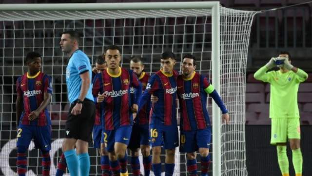 Making his 150th appearance in European competition, Messi dispatched an early penalty at Camp Nou after he was fouled in the area and Gerard Pique headed in Ansu Fati’s cross on the hour.