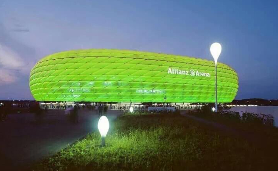 The Allianz Arena in Germany was lit in the colours of the Chapecoense club to pay tribute to the plane crash victims. Image courtesy: Twitter/@FCBayern