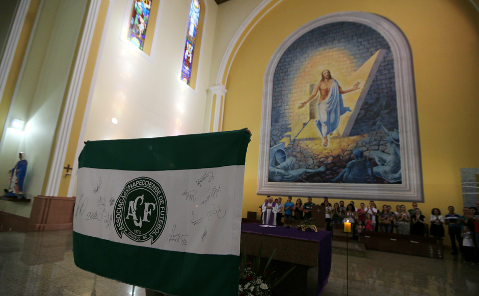 Fans of Chapecoense football team attend a mass at the Santo Antonio Cathedral in Chapeco, Brazil. Reuters