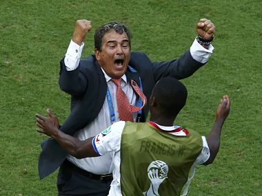 Costa Rica coach Jorge Luis Pinto hailed his players after a 1-0 win over former champions Italy took his side through to the World Cup knockout stages for the first time in 24 years. Captain Bryan Ruiz netted a header just before halftime at the hot and humid Pernambuco arena to put the Ticos on the road to victory, and Italy looked sluggish as they sought to find a way through Pinto’s well-drilled defense. [caption id=“attachment_1582317” align=“alignleft” width=“380”]  Costa Rica’s coach Jorge Luis Pinto (L) celebrates with a teammate after winning against Italy. Reuters[/caption] “Today is very special,” an elated and emotional Pinto told a news conference. “We knew today we could make history and we have been able to do so,” he added, referring to their first appearance in the knockout stage since 1990. The victory prompted scenes of wild delight among the Costa Rica fans, who could scarcely have guessed before arriving in Brazil that their team would have six points after two games. “The people of Costa Rica can celebrate,” Colombian-born Pinto told a packed media conference. “They have a very close relationship with the national team, and it works very well. “We have been working very hard for over five years. We have to enjoy the moment,” the smiling 61-year-old said. The win means the Central Americans have made it out of the group stage for the first time since their World Cup debut in Italy, and Pinto could barely conceal his delight. “In previous years we fought very hard. We been able to improve and I am very proud of that,” he told reporters. “That’s what I told my players today, let’s change history, but let’s respect the past because it is very positive. “We have changed many things,” he told reporters. “In our tactics we have a different system. We press much more, we press at the front and this is working very well.” PIRLO PLAN Pinto said prior to the game that they had a plan to shut down Italy playmaker Andrea Pirlo and it worked to perfection. The midfield general played two dangerous balls in behind the defense in the first half which led to chances, but for the most part he was never allowed to get on the ball and pick out his passes as he did against England. “We controlled Pirlo very well. We kept him under control and blocked his initiatives,” Pinto said. “Italy are very good and a very experienced side, but we tried and we did very well.” Costa Rica next meet another former World Cup winner when they face eliminated England in Belo Horizonte on Tuesday and, having already guaranteed qualification from the group, Pinto is already looking forward to extending his stay in Brazil. “We want to go further. I have told my team we have to keep calm of course, but we will fight for that. God willing we will stay in it,” he said. “A World Cup is never easy. We feel calm and mature and we might be able to go further and reach a historic level,” he said. “We’re very happy but we have to be ready for everything.” Reuters