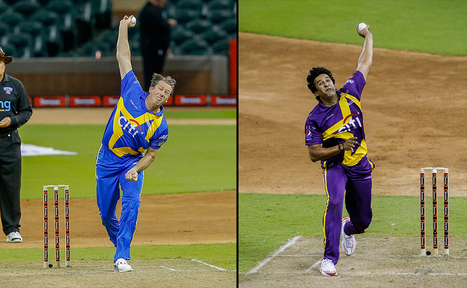 The electric Houston crowd got to see the two bowling legends - Wasim Akram and Glenn McGrath - in action but both had a field day as the Australian was thumped for 28/1 in his two overs while Akram ended with figures of 4-0-48-0. Getty