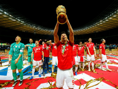 Berlin: Robert Lewandowski dedicated victory to departing team mates Arjen Robben and Franck Ribery after Bayern Munich wrapped up a domestic double with a 3-0 win over RB Leipzig in the German Cup final on Saturday. Goals from Lewandowski and Kingsley Coman sealed victory for Bayern in an enthralling game at the Olympic Stadium in Berlin. [caption id=“attachment_6702171” align=“alignleft” width=“380”]  Robert Lewandowski holds the trophy after Bayern Munich’s 3-0 win over RB Leipzig in the German Cup final. Reuters[/caption] Both Robben and Ribery came off the bench to make their final appearance in a Bayern shirt, and Lewandowski hailed the iconic duo after helping Bayern to victory with a goal either side of half time. “These titles are for Franck and Arjen, they have done so much for the club and we have to thank them,” the Polish striker told public broadcaster ARD. The win sees Bayern lift the golden German Cup trophy for the 19th time in their history, just a week after securing a seventh successive Bundesliga title last Saturday. “It was a difficult season at times, but I think we can now say that in the end, it was a very good season,” said Lewandowski. The campaign has been particularly tough for Bayern coach Niko Kovac, who has faced constant criticism both from inside and outside the club in his first year in charge. Yet the fans chanted Kovac’s name before and after the final whistle as Bayern ended their season on a high. “It will take a few days to sink in that it is now actually over, but it was good to go out with the double,” Robben told ARD. Both sides probed rather frantically for an opener in the first half, and Manuel Neuer denied Yussuf Poulsen with a reflex save on ten minutes. It was Bayern who broke the deadlock, though, Lewandowski flicking in a superb header in the 29th minute after a fine move on the left from Coman and David Alaba. Coman had a free run at goal and rounded goalkeeper Peter Gulacsi shortly before half-time, but his shot was cleared on the line by Ibrahima Konate. Emil Forsberg had a similar chance for Leipzig just after the break, but came off second best in a one-on-one with Neuer. A breathless second half saw chance after chance fall at either end, until Coman’s 77th minute strike put Bayern out of reach. The Frenchman found the top corner after elegantly bringing down a loose ball in the penalty area. He later came off for departing veteran Franck Ribery, who was making his final appearance for Bayern alongside fellow winger Arjen Robben. By that point it was already 3-0, as Lewandowski had broken free of the back line and lifted the ball over Gulacsi to secure victory five minutes from time.