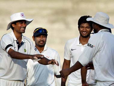 PTI[/caption] Off-spinner Jalaj Saxena picked up 2 for 12 in his nine-over spell while Bhuvneshwar Kumar got the other wicket. Central skipper Mohammed Kaif put East Zone in to bat and their opening duo of Dheeraj Jadhav and Natraj Behera started cautiously as Praveen Kumar was pretty economical during his first spell of six overs of which four were maiden. Jadhav and Behera added 44 runs in 16 overs in which the former Maharashtra opener’s contribution was 25. He hit couple of boundaries off MP seamer Ishwar Pandey while his first four came off Bhuveneshwar Kumar’s bowling. Finally, it was Saxena who trapped the left-hander leg-before in the 17th over Jadhav had faced 60 balls for his 25. Skipper Behera, who opened the innings as Manish Vardhan made way for Ishank Jaggi, was a bit defensive during his knock of 22 from 61 deliveries and he paid a price for getting into a shell. There was a time after Jadhav’s dismissal, the two batsmen Behera and Majumdar couldn’t score a single run for five overs. Thus when Saxena bowled a full-toss, Behera could only manage to offer a simple catch to Bhuvneshwar at mid-on. Anustup Majumdar was uncomfortable right from the beginning as he got a streaky boundary past the slip to open his account. Although he hit another boundary during his knock of 13, he flicked one bowled by Bhuvneshwar onto his pads straight to square leg fielder Saxena. Brief Scores: East Zone 64/3 in 31.2 overs (D Jadhav 25, N Behera 22, J Saxena 2/12) vs Central Zone. PTI