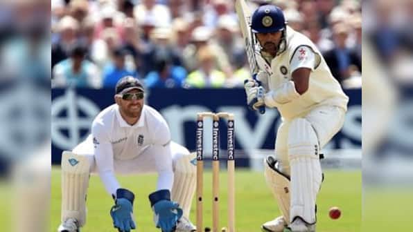 Murali Vijay’s nickname is the Monk. He earned it because of a predilection for shaving his head but anyone watching his century on the first day of the first Test at Trent Bridge would be forgiven for thinking it was because he has all the attributes of one. Patience, discipline and a willingness to accept the ups and downs of the day’s play characterised Vijay’s first hundred outside India. His knock was the reason India could claim the honours over England on day one, having ended up on 259 for 4. [caption id=“attachment_1612143” align=“alignleft” width=“380”]  Murali Vijay kept his eye on the ball. AFP[/caption] Vijay had come in to the Test with no discernible success away from home - he averaged just 18.5 outside the subcontinent before this innings - but behind the scenes he was working hard on his cricket. “I’ve worked a lot with videos of James Anderson,” Vijay told Sky Sports after ending the day unbeaten on 122. “The first 15 minutes are the toughest thing as an opener. I wanted to play straight and late. Duncan Fletcher has helped a lot because he knows how things work in these conditions. We were working for two weeks before we came out here.” There were a couple of early edges that ran away to third man but that aside, Vijay did not put a foot wrong in the six hours he was at the crease. He was never tempted by deliveries just outside offstump but the moment the bowlers went that little bit wider, he crashed them through the covers with joy. His timing was exquisite. Shots that were no more than a push would see the ball racing past bowlers and fielders. He was adaptable too. He struck 11 fours in getting to his 50. Then when India lost the wickets of Cheteshwar Pujara and Virat Kohli immediately after lunch, and Anderson and Broad were looking threatening with every delivery, Vijay knuckled down and ground out seven runs from 45 deliveries, and in the company of Ajinkya Rahane, made sure there would be no collapse. “After lunch it was reversing a bit and it was also a little windy,” Vijay said. “Anderson and Broad got the ball to move around a bit and we lost a couple of wickets as a result. So we had to regroup. We are not worried about their reverse swing because we have seen them deploy it in the past series and we have prepared for it.” The best example of Vijay’s unhurried and unruffled performance came after he drove Broad straight down the ground to get to 99. Liam Plunkett chose to test his nerve by bowing short and into the body at him from around-the-wicket. It was prove to be wasted time as Vijay was content to drop his hands and sway out of the way. Having worked so hard to get to the threshold of three figures, he wasn’t going to slip at the final step. “Patience is something that I have been working on” he said “You need to bide your time at the crease and not be in a hurry. It is a five-day game and you want to tire the opposition out. So that has been my game-plan and this is what I have been working on all this while. Once you get set and the rhythm gets going, you enjoy in the middle. India will be hoping he continues to enjoy the middle on day two.