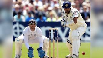 Murali Vijay kept his eye on the ball. AFP[/caption] Vijay had come in to the Test with no discernible success away from home - he averaged just 18.5 outside the subcontinent before this innings - but behind the scenes he was working hard on his cricket. “I’ve worked a lot with videos of James Anderson,” Vijay told Sky Sports after ending the day unbeaten on 122. “The first 15 minutes are the toughest thing as an opener. I wanted to play straight and late. Duncan Fletcher has helped a lot because he knows how things work in these conditions. We were working for two weeks before we came out here.” There were a couple of early edges that ran away to third man but that aside, Vijay did not put a foot wrong in the six hours he was at the crease. He was never tempted by deliveries just outside offstump but the moment the bowlers went that little bit wider, he crashed them through the covers with joy. His timing was exquisite. Shots that were no more than a push would see the ball racing past bowlers and fielders. He was adaptable too. He struck 11 fours in getting to his 50. Then when India lost the wickets of Cheteshwar Pujara and Virat Kohli immediately after lunch, and Anderson and Broad were looking threatening with every delivery, Vijay knuckled down and ground out seven runs from 45 deliveries, and in the company of Ajinkya Rahane, made sure there would be no collapse. “After lunch it was reversing a bit and it was also a little windy,” Vijay said. “Anderson and Broad got the ball to move around a bit and we lost a couple of wickets as a result. So we had to regroup. We are not worried about their reverse swing because we have seen them deploy it in the past series and we have prepared for it.” The best example of Vijay’s unhurried and unruffled performance came after he drove Broad straight down the ground to get to 99. Liam Plunkett chose to test his nerve by bowing short and into the body at him from around-the-wicket. It was prove to be wasted time as Vijay was content to drop his hands and sway out of the way. Having worked so hard to get to the threshold of three figures, he wasn’t going to slip at the final step. “Patience is something that I have been working on” he said “You need to bide your time at the crease and not be in a hurry. It is a five-day game and you want to tire the opposition out. So that has been my game-plan and this is what I have been working on all this while. Once you get set and the rhythm gets going, you enjoy in the middle. India will be hoping he continues to enjoy the middle on day two.