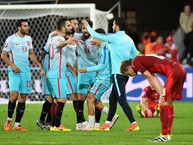 Czech Republic and Turkey met in the final Group D clash on Tuesday night, and although neither team has been playing anywhere close to their best, both had dim hopes of qualification for the knock-out stages of Euro 2016. Pavel Vrba’s Czech side kept their hopes alive through an injury time equaliser against Croatia in their previous match after crowd trouble and flares disrupted the game. And though Vrba would thank the wastefulness of the Croats and the fans’ hooliganism for coming away with one point, the result surely would have lifted the team’s morale. Facing a hapless Turkey side that had lost both its opening two matches, they must have been in a confident mood with the momentum in their favour. Faith Terim’s Turkey lost their opening game to Croatia 1-0 — and the deficit should have been much worse — and then conceded three times to Spain. They met Czech on Tuesday night with zero points and zero goals scored. But such was the nature of the competition that a win would still keep them in the mix of things. [caption id=“attachment_2849448” align=“alignleft” width=“380”]  Turkish players celebrate after winning 2-0 and eliminating Czech Republic. AP[/caption] In theory, both teams stood a chance to progress to the knockout rounds with a victory, but they both had to prove that they deserved to qualify. Something they were yet to do in their two opening matches against Spain and Croatia. Incredibly, it is the Turks who are still alive in Euro 2016, following 90 minutes of football against Czech. A team that had lost its two opening matches and came into this match with a goal difference of minus four is still alive in Euro 2016. They put their past performances behind them and played like a team full of confidence. The crowd helped too, and it almost felt like a home game for the Turks at times. But it really was testament to Fatih Terim’s experience and his gamble of appealing to his side’s attitude that worked in their favour. A perusal of Czech’s opening two results would seem to suggest they just about failed to make the cut. They lost to Spain due to a last-minute goal and drew against Croatia after being 2-0 down. On paper, they might have looked like they just fell at the last hurdle. But anyone who has watched them must have seen how poor they have been and how their football has continuously left a lot to be desired. In the first two games, Vrba’s approach was conservative and the deficit could have been much worse but for some good defending on their part and wastefulness from their opponents. Against Turkey, they had to show more positivity, take the game to the opposition and create more chances. And they had to do all this with their opponents trying to do the same. They needed footballing and a character masterclass against Turkey. They showed neither. They started quickly but were immediately on the back foot, as Turkey began threatening with their counterattacks. Arda Turan looked threatening for the first time this tournament and he released 18-year-old Emre Mor, who squared it for Burak Yilmaz to give the Turks the lead. The Czechs were themselves wasteful after that, especially when Pavel Kadeřábek and Volkan Babacan missed glorious chances. As the Czechs missed the chances that came their way, Turkey looked more and more threatening, and their counterattacks were consistently brilliant. It was actually just a matter of time before they were celebrating again, and they did just that in the 65th minute, when Ozan Tufan struck the ball in the back of the net, the excitement was palpable. Mor deserves special praise. Borussia Dortmund snapped up the player before the tournament and Thomas Tuchel must be beaming with pride right now. The 18-year-old made history on Tuesday and became the the third youngest player in a European Championship to assist a goal. While that is just a number, it is his overall performance that should remain in books. The young star was absolutely fantastic on the night and was indeed Turkey’s “savior”. Making his first start of the tournament, the player was electric on the ball. Turkey have done their job and will now wait for the rest of the results to see if they have any chance of progressing further. If Hungary beat Portugal and the Republic of Ireland and Sweden are unable to win their matches against Italy and Belgium, Turkey will have secured the most unlikely of second round spots. Both the countries’ fans had demanded a response to their sides’ abject performances, but only one football side responded. The Turks were ballsy, fierce and ruthless on the night, a complete opposite of their opponents.