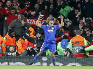 Olympiakos’ Youssef El-Arabi celebrates after scoring a goal during the Europa League round of 32, second leg match between Arsenal and Olympiakos. AP[/caption] The North London club were among several heavyweights who slumped out as the Portuguese trio of Benfica, Sporting and Porto as well as Ajax Amsterdam and Celtic were also eliminated from Europe’s second-tier competition in the Round of 32. Arsenal had beaten Olympiakos 1-0 in the first leg and appeared to have done enough to squeeze through when Pierre-Emerick Aubameyang struck in the 113th minute to cancel out Pape Cisse’s 53rd-minute header which levelled the tie on aggregate. But the visitors had the last laugh as Youssef El Arabi struck seven minutes later to delight the noisy contingent of away fans, with Aubameyang missing a gilt-edged chance to force another twist with the last kick of the game. Manchester United breezed to a 6-1 aggregate win over 10-man Bruges after a 5-0 return-leg rout of the Belgians at Old Trafford, while Wolves advanced with a 6-3 overall victory against Espanyol despite a 3-2 second-leg defeat in Spain. New loan signing Odion Ighalo celebrated his first start for United with his maiden goal for the club after Bruno Fernandes had fired the home side ahead with a 27th-minute penalty which also produced a red card for Bruges defender Simon Deli. The centre back was dismissed after he dived in goalkeeping fashion to handle a Daniel James shot before Fernandes sent Simon Mignolet the wrong way with the spot-kick. Scot McTominay made it 3-0 on the night with a fine first-time shot from 18 metres just before the break and Brazilian midfielder Fred put the icing on the cake with a late brace for United, who won Europe’s second-tier competition in 2016. Wolves took a 4-0 first-leg lead to Espanyol and never looked in danger as Adama Traore scrambled in a close-range effort and Matt Doherty also scored as they twice cancelled out goals from Jonathan Calleri, who scored a hat-trick. Portuguese suffer Bayer Leverkusen blew Porto away with a 3-1 win on the road, after taking a 2-1 lead in Germany last week, thanks to goals from Lucas Alario, Kerem Demirbay and Kai Havertz before Moussa Marega netted a consolation for the home side. Sporting exited after losing 4-1 at Istanbul Basaksehir following extra time to go down 5-4 on aggregate after Edin Visca gave the hosts a lifeline with a late goal in normal time and then netted a penalty to take them through. Shakhtar Donetsk edged Benfica 5-4 on aggregate after a thrilling 3-3 draw in Lisbon, while Ajax endured a bittersweet 2-1 home win over Getafe which meant a 3-2 aggregate defeat against the Spanish side. Celtic could not capitalise on a 1-1 first-leg draw at FC Copenhagen as they suffered a 3-1 home defeat, while Inter Milan strolled to a 2-1 home win over Bulgarians Ludogorets Razgrad to complete a 4-1 aggregate victory. The match at the San Siro stadium was played behind closed doors as the authorities try to contain the coronavirus that has made northern Italy the focal point of the outbreak in Europe. AS Roma, 1-0 winners against Gent in the first leg, looked to face a struggle when Jonathan David levelled the tie on aggregate after 25 minutes but Justin Kluivert eased the Serie A side’s nerves with a quick equaliser as they progressed. Vfl Wolfsburg beat Swedish side Malmo 3-0 away to breeze through 5-1 on aggregate and FC Basel also advanced with a 1-0 home win over APOEL Nicosia for a 4-0 aggregate success. LASK Linz were surprise 3-1 overall winners against Dutch side AZ Alkmaar after a Marko Raguz double helped the Austrians to a 2-0 victory.