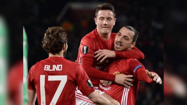 Paris: Zlatan Ibrahimovic put Saint-Etienne to the sword with a hat-trick as Manchester United beat the French club 3-0 in the first leg of their Europa League last-32 tie on Thursday. The Swede loved playing against Les Verts throughout his four years at Paris Saint-Germain and he was at it again to take his tally in 14 games against them to 17 goals. Ibrahimovic opened the scoring with a deflected free-kick a quarter of an hour in and had a headed effort disallowed for offside at the start of the second half. [caption id=“attachment_3287746” align=“alignleft” width=“380”] Manchester United’s Zlatan Ibrahimovic (r) celebrates scoring his team’s first goal. AFP[/caption] However, he tapped in from a Marcus Rashford cutback 15 minutes from the end and wrapped things up with a penalty two minutes from time after he had been brought down in the box. Victory gives Jose Mourinho’s side one foot in the last 16 ahead of next Wednesday’s return leg, although things could have been very different had Nolan Roux not spurned a chance just before United’s second goal. The win also meant United star Paul Pogba came out on top in his first competitive appearance against his elder brother, Florentin, and the world’s most expensive player came close to scoring with a header that hit the bar in the second half. Bosnian striker Edin Dzeko has been in fine form himself and he scored three times in little over 20 second-half minutes as Roma romped to a 4-0 victory away to Villarreal in Spain. The Brazilian Emerson Palmieri gave Roma the lead with a vicious 32nd-minute hit and Dzeko then took charge in the second half, scoring the first of his three goals in the 65th minute. Dzeko is Serie A’s leading scorer with 18 goals and now has eight goals this season in the Europa League, in which Roma appear to have more than one foot in the last 16. Spurs beaten in Belgium Tottenham Hotspur have work to do in their tie against Gent after losing 1-0 in the first leg in Belgium. The only goal of the game came just before the hour mark when French striker Jeremy Perbet, formerly of Villarreal, scored at the second attempt from a Danijel Milicevic cutback, as Gent coach Hein Vanhaezebrouck celebrated his 53rd birthday with a win. Tottenham goalkeeper Hugo Lloris pushed a Milicevic shot onto the post while Harry Kane had earlier struck an upright at the other end. It was a disappointing performance from Mauricio Pochettino’s side, who must now look to turn the tie around in next week’s return at Wembley. “I am disappointed because we had a lot of opportunities before we conceded, but the tie is open,” Pochettino told BT Sport. Tottenham struggled to adapt to playing ‘home’ games at Wembley in the Champions League, losing to Monaco and Bayer Leverkusen there. “This is a fantastic opportunity for us to demonstrate to ourselves that we can win at Wembley and be ready for next season,” when they will play all home matches there, Pochettino added. Meanwhile, Federico Bernardeschi scored the only goal from a fine free-kick as Fiorentina won 1-0 away to Borussia Moenchengladbach. Alexandre Lacazette found the net twice as Lyon romped to a 4-1 victory away to AZ Alkmaar in the Netherlands and Schalke also claimed a big win on the road. The German side beat PAOK 3-0 in Greece with Klaas-Jan Huntelaar securing the win when he scored his 50th European goal late on. Aritz Aduriz scored his seventh goal in six Europa League games for Athletic Bilbao but their 3-2 win at home to APOEL keeps the Cypriots in the tie ahead of the return. There were also first-leg wins for Krasnodar, Rostov, Shakhtar Donetsk, FC Copenhagen, Besiktas and Anderlecht. The Belgians beat fancied Zenit St Petersburg 2-0 in Brussels with two goals from Ghana international Frank Acheampong.