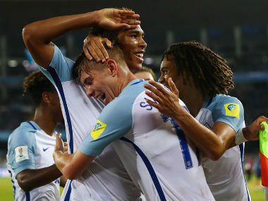 Kolkata: England underlined their title credentials with a classy 4-0 victory over Iraq to top Group F in a FIFA U-17 World Cup tie at the Vivekananda Yuva Bharati Krirangan on Saturday. Manchester United’s Angel Gomes – in his first start – opened the scoring in the 11th minute. Danny Loader notched up a second-half brace (59th, 71st), with Emile Smith-Rowe finding the target once in the 57th minute. [caption id=“attachment_4143847” align=“alignleft” width=“380”] Daniel Loader (C) of England celebrates a scored goal during the FIFA U-17 World Cup India 2017 group F match between England and Iraq at Vivekananda Yuba Bharati Krirangan. Getty Images[/caption] The Englishmen could have heaped more humiliation on the Iraqis, but their star forward Jadon Sancho’s penalty was saved in the 23rd minute. With an all-win record in the tournament so far, England will now take Japan who finished second in Group E in the pre-quarterfinals at the same venue on Tuesday. Iraq, meanwhile, finished second and will take on Mali on the same day in Goa. For England, central defenders Marc Guehi and Joel Latibeaudiere along with wideman Jadon Sancho were the only three players who made the starting lineup from the last game as coach Steve Cooper ringed in as many as eight changes. Iraq, on the other hand, rested their most influential player Mohammed Dawood, who only came on as a replacement in the second half. England took the lead when Gomes initiated a move freeing Nya Kirby on the right. Daniel Loader failed to reach Kirbi’s low cross, but Gomes followed up the action to slot home. Emile Smith Rowe then came close to scoring but his angular shot missed the far post by a whisker. Smith Rowe then earned a penalty after he was brought down by Mohammed Albaquer inside the box. But Iraq goalkeeper Ali Ibadi read it correctly and dived to his right to deny Sancho what could have been his fourth goal of the tournament. Minutes later, Smith Rowe again found himself in the clear but this time also the Iraqi goalkeeper made a good save. In the 32nd minute, Iraq got their first real chance. A wonderful move saw skipper Mohammed Ridha set up Ali Kareem who had only England goalkeeper William Crellin to beat, but Crellin effected a good save. Ali Kareem again spurned an opportunity after Mohamed Kareem did the spadework. This time he hit straight to a defender with goalkeeper Crellin woefully out of position. England led by the solitary goal at halftime, but Iraq showed enough promise to bite back after the restart. Coach Qahtan Chitheer unleashed Dawood three minutes into the second period and the in-form forward almost made the most of a goalkeeping lapse. After Mohamed Kareem’s initial effort was blocked, Dawood blasted over the rebound from close range. Just when Iraq looked likely to peg back, England changed gears and snatched the game away from the Asian U-16 champions in the space of two minutes. First, Smith Rowe atoned for his earlier misses with an exquisite flicked finish after playing a delightful one-two with Gomes. Two minutes later, Loader rounded off Iraq keeper Ibadi to slot the ball home after the defenders were caught napping. The Reading striker would have his second soon after, making the most of a Steven Sessegnon pass to ruffle the net. Matters turned from bad to worse for Iraq as Dawood picked up a second booking which means he will miss the next game.