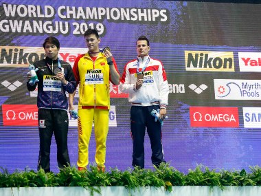 Gwangju: China’s Sun Yang and British rival Duncan Scott were rebuked by FINA on Tuesday following a heated exchange after Sun retained the 200 metres freestyle world title. Scott, who tied for bronze, refused to shake hands with Sun on the podium in Gwangju after the playing of the national anthem or join him and the other medallists on the top step to pose for photos. [caption id=“attachment_7045971” align=“alignleft” width=“380”]  Sun Yang was snubbed on the podium by Duncan Scott after former retained 200 metres freestyle world title. Reuters[/caption] His snub, which follows a similar protest from Australian Mack Horton after losing to Sun in the 400m final at the weekend, sparked a furious reaction from Sun. The triple Olympic champion shook his fist at Scott before getting in his face, waving his finger at the Briton and barking: “You’re a loser — I win!” The Chinese giant has faced hostility from swimmers in South Korea after a leaked FINA doping panel report alleged he had used a hammer to destroy vials of his own blood after testers visited him last year. Swimming’s governing body warned Sun and Scott for bringing the sport into disrepute, a FINA statement reading: “Both competitors had an inadequate behaviour on this occasion”. FINA also sent a letter to Horton for a similar podium snub at the weekend, which reignited a bitter feud that goes back to the 2016 Rio Olympics. Scott, who marched off the pool deck during the post-ceremony lap of honour, was unrepentant. “If Sun can’t respect our sport then why should I respect him?” he said. “I think a lot of people, everyone in swimming, got behind what Mack did.” Horton labelled Sun a “drug cheat” in Rio over a three-month suspension his Chinese rival served for taking a banned stimulant two years earlier.