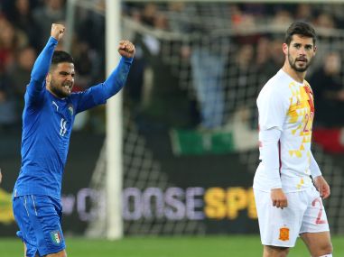 Italy forward Lorenzo Insigne ended David De Gea’s six-game unbeaten run in the Spain goal in a 1-1 friendly draw on Thursday that gave Azzurri fans hope for this summer’s Euro 2016 in France. Spain, who thrashed Italy 4-0 in the final of the 2012 European Championships, were on a seven-game winning run that had seen Manchester United ‘keeper De Gea keep a clean sheet in their last six outings. But Vicente Del Bosque’s men were sorely lacking creativity and failed to produce a single shot on goal in the opening half of a game for the first time since meeting Belarus in a World Cup qualifier in 2013. [caption id=“attachment_2695702” align=“alignleft” width=“381”] Lorenzo Insigne celebrates after scoring. AP[/caption] Italy coach Antonio Conte had deployed a largely experimental 3-4-3 but after some early teething problems the 46-year-old coach, who will quit after this summer’s showpiece in France, must have been buoyed. Insigne replaced Inter Milan striker Eder shortly after the restart and finished off a great move to toe poke past De Gea on 67 minutes, although Italy’s joy was short-lived. Only three minutes later 35-year-old Athletic Bilbao striker Aduriz slammed the ball into the roof of the net from a yard out when Gianluigi Buffon spilled Juventus teammate Alvaro Morata’s header from a free kick. Conte said: “I’m very satisfied with the lads’ performance, especially as we changed the tactical formation. “They put into practice a lot of the things we worked on in recent days. I don’t want to talk about objectives for the Euro 2016. All we want to do is give it everything we have, and above all not to leave the pitch with any regrets.” Italy midfielder Emanuele Giaccherini was one of several players to benefit from Conte’s quest to inject youth and energy into his new-look side. After a solid performance he admitted: “I’ve played against Spain four times in the past five years and, to be honest, I’ve never seen them playing like that.” Spain defender Cesar Azpilicueta, however, was quick to remind: “These are our last two friendlies before the Euro, and we want to prepare as best as we can. “We’re the defending champions and we want to defend our title, even if we know it won’t be easy.” It was a sluggish start at Udinese’s newly-refurbished Stadio Friuli but Lazio winger Antonio Candreva was particularly lively, keeping De Gea on his toes early on when his cross came off the post and then forcing the ‘keeper to parry his long-distance drive. Graziano Pelle was the centrepiece in Conte’s three-man attack but when the big Southampton striker held off Gerard Pique to set up Florenzi on the corner of the area, the Roma right-back’s low cross was straight at the ‘keeper. Italy were into their stride and Candreva’s high, deflected cross found Emanuele Giaccherini unmarked on the edge of the box. The Bologna man, given an ovation for a solid night’s work when he was replaced in the closing stages, hit a crisp volley that looked to be goalbound but it took a deflection off Mata. Spain threatened briefly when Aduriz collected Eder’s mis-hit backpass to set up Morata on the left but the move was flagged offside, while at the other end Pelle controlled well to set up Eder for a soft volley that De Gea collected. Del Bosque made two changes for the start of the second half with Mata and Ramos replaced by Koke and Nacho respectively. But Italy were soon in control. Eder was bundled off the ball after a promising run through the middle but on the follow-up his inviting cross had Spain in a panic as Marco Parolo powered in to header. Insigne took little time to make an impact after he replaced Eder on 51 minutes, finishing off a great move by Giaccherini to force De Gea into action at his near post. From the corner, Leonardo Bonucci’s header from the corner went just wide. Minutes later, Insigne had fans on their feet at the Friuli when he slid in to send Giaccherini’s cross past De Gea at his left post. Juve’s defence was at fault when Morata drifted in behind to get his head to a free kick minutes later, and when Buffon couldn’t hold, Aduriz was quick to the rebound. Italy enjoyed the lion’s share of chances in the closing period, when De Gea had to tip over a cheeky lob from Insigne and, with the added zip of Juventus striker Simone Zaza, were unlucky not to snatch the win that would instill confidence ahead of Tuesday’s away game with world champions Germany. AFP
