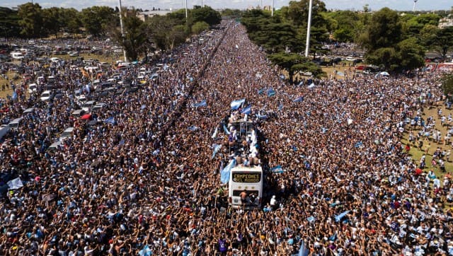 After arriving home from Qatar in the early hours of the morning, the players spent a short time resting at the Argentine Football Association training complex in the Ezeiza suburb of the capital. Tuesday had been declared a public holiday for the celebrations. “This trophy that we won is also for all those that did not manage to win it in previous World Cups we played, such as Brazil 2014,” Messi said on social media, referring to the team that lost 1-0 to Germany in the title match eight years ago. Argentina won the final in Qatar 4-2 on penalties after a roller-coaster 3-3 draw for their first world title in 36 years. That allowed Messi, 35, to finally crown his record-breaking career with football’s biggest prize as he produced one of the greatest World Cup final performances, scoring a first-half penalty and netting again in extra time. In doing so, he emulated his predecessor as Argentina’s idol, Diego Maradona, who inspired the country to their second world title with a series of match-winning displays in Mexico in 1986. Read all the Latest News , Trending News , Cricket News , Bollywood News , India News and Entertainment News here. Follow us on Facebook , Twitter and Instagram .
