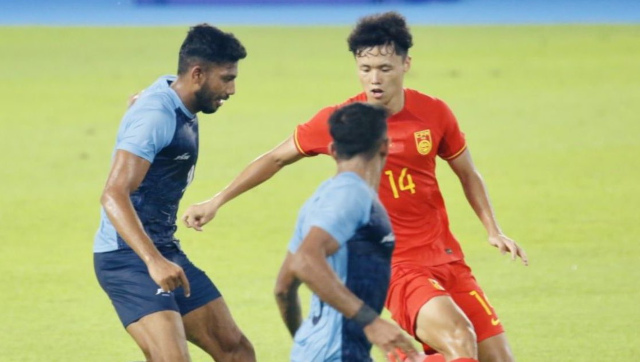 The Indian men’s football team were extended a rough welcome on their return to the Asian Games after nine years, suffering a 5-1 thrashing at the hands of hosts China in the opening game in Hangzhou on Tuesday. Rahul KP had briefly ignited India’s hopes of registering their first-ever win against China with an injury-time equaliser after the hosts seized the lead early on at Hangzhou’s Huanglong Sports Centre Stadium. Team Dragon however, thoroughly dominated the second half, finding the net four times to put the result beyond any doubt, and collect their first points of the campaign with a thumping 5-1 victory. It was but natural that the hosts would kick the game off at a frenetic pace, buoyed as they were by a partisan crowd. The vigour and passion generated by the anthems had barely subsided when they conjured their first chance, Tao Qianglong crossing from the left only for Xu Haoyang to put his header wide. It was a sign of things to come. China repeatedly targeted the Indian right through the early exchanges, Qianglong running riot, and with ease. In the 13th minute, Tan Long was played through by Dai Weijun, a brilliant through ball undoing the Indian defence. Long shot at goal from close range but a snap reflex by Gurmeet saw the attempt saved. In the end it didn’t matter, the linesman had ruled it offside.
