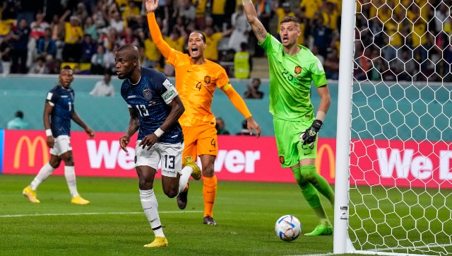 Records Gakpo, the gangly PSV Eindhoven forward who has been strongly linked with a move to Manchester United, put the Netherlands in front with a superb strike in the sixth minute at the Khalifa International Stadium. Yet, with a large and vociferous support behind them, Ecuador fought back with such ferocity that the Dutch were rattled, and they deserved the equaliser when it came through Enner Valencia four minutes after half-time. It was Ecuador captain Valencia’s third goal of the World Cup already after his brace in his country’s opening win over Qatar. And one consequence of this result is that the host nation, already beaten twice, are the first team to be eliminated from their own World Cup. [caption id=“attachment_11699021” align=“alignnone” width=“640”] Qatar’s Hassan Al-Haydos, left, and Akram Afif react after their 3-1 loss against Senegal in the 2022 FIFA World Cup. AP[/caption] In contrast three-time beaten finalists the Netherlands are not quite through to the next round, with one point separating them, Ecuador and Senegal, who
