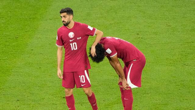 Qatar’s Hassan Al-Haydos, left, and Akram Afif react after their 3-1 loss against Senegal in the 2022 FIFA World Cup. AP[/caption] In contrast three-time beaten finalists the Netherlands are not quite through to the next round, with one point separating them, Ecuador and Senegal, who