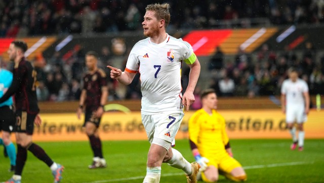 “We were too restrained, too passive, and we weren’t able to put the opponent under pressure,” Germany coach Hansi Flick told TV network RTL, saying “Belgium played mercilessly”. The four-time world champions suffered a second successive World Cup group-stage exit in Qatar last year, which followed a last-16 loss to England at Euro 2020. Belgium’s German-raised coach Tedesco pushed Yannick Carrasco up front in place of Arsenal’s Leandro Trossard and the move paid immediate dividends, with the Atletico Madrid winger blasting in on the counter just six minutes in. Romelu Lukaku, scorer of all three goals in Belgium’s 3-0 romp against Sweden in Euro qualifying on Friday, then smashed in a left-footed effort to double the lead, the goal again assisted by De Bruyne. With three first-choice central defenders out, a rattled Germany looked all but certain to concede a third. The introduction of Emre Can, who replaced the injured Leon Goretzka midway through the first half, brought the home side some desperately needed stability. Germany were on the board soon after when Niclas Fuellkrug converted a penalty awarded for a Lukaku handball, giving the late-blooming Werder Bremen striker his sixth goal in six international appearances. Belgium’s incisiveness eluded them in the second half as Germany pushed for an equaliser but they were unable to break through, coming closest when Timo Werner had a goal chalked off for offside. “The first 30 minutes were terrible — for the first 15 we weren’t on the pitch at all,” said Germany captain Joshua Kimmich. “But the second half was definitely better, how we imagined it pre-match.” De Bruyne sealed the win with just over 10 minutes remaining with a one-touch finish assisted by Trossard to complete a memorable captain’s performance. Serge Gnabry gave Germany hope of a draw when he scored with three minutes remaining but the visitors held on for a morale boosting win. Read all the Latest News , Trending News , Cricket News , Bollywood News , India News and Entertainment News here. Follow us on Facebook, Twitter and Instagram.