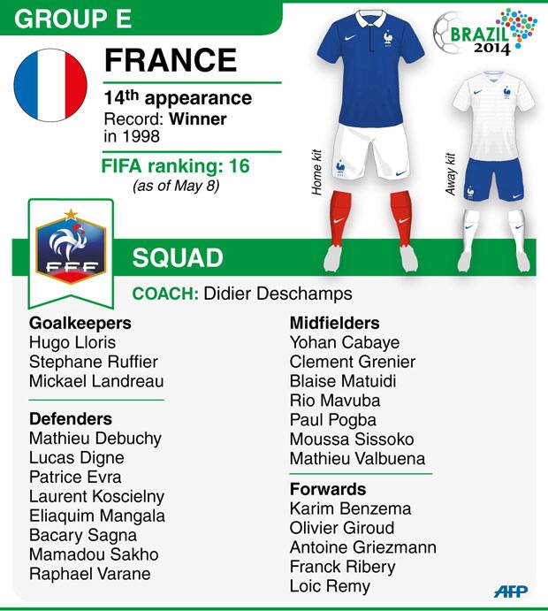 Paris: Several members of the France team that went on strike in training four years ago will be at the World Cup in Brazil, including mainstays Franck Ribery and Hugo Lloris. But France coach Didier Deschamps has freshened up an aging squad and youngsters like 21-year-old Juventus midfielder Paul Pogba will be eager to make an impression on the world stage. Karim Benzema, who was left out of the squad for the World Cup in South Africa four years ago, will get his chance to shine after a disappointing European Championship in 2012, and Blaise Matuidi has become a key player thanks to his boundless stamina and tenacious tackling. [caption id=“attachment_1564569” align=“alignleft” width=“380”]  File picture of the French team.Reuters[/caption] Here are five players to watch: KARIM BENZEMA After failing to score in the last two European Championships, and missing out on the 2010 World Cup, this is Karim Benzema’s big chance to shine on the world stage. In the space of a few months, he has gone from losing his form and confidence to becoming one of the most lethal strikers in Europe. It has been some turnaround from Benzema, who lost his place in the France team to Olivier Giroud last year after a dismal run of 15 international games without a goal. Since the turn of the year, the 26-year-old Benzema has scored freely for Real Madrid and he even outshone Cristiano Ronaldo in the 4-3 loss to Barcelona on March 23, scoring two clinical goals. HUGO LLORIS Not many goalkeepers are international captains, especially not the silent ones. But, despite his mild-mannered demeanor and soft voice, Hugo Lloris has nonetheless imposed himself as a leader on the field through his faultless attitude and consistent performances. The Tottenham goalkeeper has been firmly installed as France’s No. 1 since the last World Cup and with 55 international appearances at the age of 27, he is set to win more than 100 caps for his country. Quick off his line, solid in the air on corners and free kicks, and with exceptional reflexes as well as good feet, Lloris is a complete ‘keeper. BLAISE MATUIDI Defensive midfielder Blaise Matuidi is one of the most valuable members of the France team. A tireless runner with tremendous stamina, he is also a tenacious tackler and a careful passer. He rarely does anything flashy, but his ability to keep things simple has proved invaluable for French champion Paris Saint-Germain and the national team over the past two seasons. The 26-year-old Matuidi made only four appearances in two years under former France coach Laurent Blanc. He has already been picked 16 times by Didier Deschamps, France’s former captain, who perhaps sees something of himself in the way Matuidi sacrifices himself for the team. PAUL POGBA France coach Didier Deschamps gave Paul Pogba a huge vote of confidence when he thrust him into the starting lineup against world champion Spain in a crucial World Cup qualifier last March. It was only the 21-year-old Pogba’s second international appearance, but Deschamps thought he was ready to face the best midfield in the world. Although Pogba got sent off for a clumsy foul on Xavi Hernandez, the experience served him well and he has not been out of the side since. His graceful, athletic running, solid tackling and excellent passing are allied to a brilliant eye for goal. Pogba has scored some superb long-distance goals for Juventus and Deschamps is counting on him to show his attacking flair in Brazil. Raphael Varane When Jose Mourinho swooped for young Varane during his time at Real Madrid, it was no surprise — it was only a confirmation of the centre-back’s immense talent. At just 21, he is already a Champions League winner and was diligent in his duties as Sergio Ramos’ partner in the final against Atletico. Look out for this guy — a sure-shot star of the future. Goalkeepers: Hugo Lloris (Tottenham Hotspur), Mickael Landreau (Bastia). Defenders: Mathieu Debuchy (Newcastle), Lucas Digne (Paris St-Germain) Patrice Evra (Manchester United), Laurent Koscielny, Bacary Sagna (both Arsenal), Eliaquim Mangala (Porto), Mamadou Sakho (Liverpool), Raphael Varane (Real Madrid). Midfielders: Yohan Cabaye, Blaise Matuidi (both Paris St-Germain), Morgan Schneiderlin (Southampton), Rio Mavuba (Lille), Paul Pogba (Juventus), Moussa Sissoko (Newcastle), Mathieu Valbuena (Marseille), Remy Cabella (Montpellier). Forwards: Karim Benzema (Real Madrid), Olivier Giroud (Arsenal), Antoine Griezmann (Real Sociedad), Loic Remy (Newcastle, on loan from QPR). [caption id=“attachment_1564563” align=“alignleft” width=“620”]  This Infographic was created before Franck Ribery and Grenier tore were ruled out of the World Cup due to injury. They have been replaced by Remy Cabella and Morgan Schneiderlin.[/caption] AP