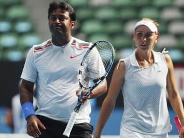 Paris: Leander Paes had mixed luck in the French Open tennis Saturday. While the top Indian doubles player and his Russian partner Elena Vesnina easily won through to the quarterfinals of the mixed doubles, he and Austrian Alexander Peya lost the men’s double second round. Paes and Vesnina, seeded fifth, beat French pair Mathilde Johansson and Marc Gicquel 6-2, 6-0, while seventh-seeded Paes and Peya were beaten in the men’s doubles by Mikhail Elgin of Russia and Denis Istomin of Uzbekistan, 4-6, 1-6. Paes and Vesnina dominated the match and it was a matter of time before the French gave in. The Indo-Russian pair awaits the winners of the match between top seeds Max Mirnyi of Belarus and Leizel Huber of the US and Peya and Alicia Rosolska of Poland. [caption id=“attachment_330382” align=“alignleft” width=“380” caption=“Leander Paes and Elena Vesnina in this file photo. Reuters”]  [/caption] Peya and Rosolska Saturday beat Brazilian Bruno Soares and Jarmila Gaidosova of Australia in the super tie-break in a hard-fought match, 3-6, 7-6 (6), 10-8. In the men’s doubles, the Indo-Austrian pair failed to take advantage of the four break points on offer, converting only one of them, whereas the unseeded Russian-Uzbek combine converted five of the 10 break points. India’s remaining hope at the Open is the other mixed doubles team of Mahesh Bhupathi and Sania Mirza. It was a nightmarish championship for the Indians. Sixth seeds Bhupathi and Rohan Bopanna lost in the doubles first round to French pair of Marc Gicquel and Edouard Roger-Vasselin Thursday while Sania and her American partner Bethanie Mattek-Sands crashed out of the women’s doubles Tuesday. Bopanna, partnering American Lisa Raymond, lost to the unseeded team of Natalie Grandin of South Africa and Australian Paul Hanley in the opening round. IANS