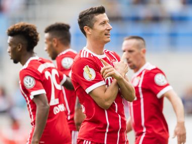 Berlin: A hat-trick for Pierre-Emerick Aubameyang and a brace for Robert Lewandowski saw Borussia Dortmund and Bayern Munich reach the second round of the German Cup on Saturday. Defending champions Dortmund eased to a 4-0 victory over sixth-tier minnows Riesalingen-Arlen, while Bayern secured a 5-0 win over third division Chemnitz. A deflected free-kick saw Lewandowski open the scoring for Bayern after just 20 minutes with the Bundesliga champions striking again on the counter-attack shortly after half-time, Kingsley Coman doubling the lead. [caption id=“attachment_3925051” align=“alignleft” width=“380”] Robert Lewandowski scored a brace as Bayern Munich advanced to second round of German Cup. AFP[/caption] Record signing Corentin Tolisso set up Bayern’s third goal, sending in a low cross for Lewandowski to tap in his second of the afternoon. With victory assured, Franck Ribery whipped a direct free-kick into the bottom corner in the 79th minute, and Mats Hummels headed in Bayern’s fifth just before the final whistle. “The most important thing today was reaching the second round,” Lewandowski told Sky Sport. “It’s always important to score the first goal, and it’s not always easy. We didn’t have much space today, Chemnitz played defensively.” Dortmund were dominant from the offset, as defender Marc Bartra gave Peter Bosz’s team the lead in the 12th minute, and Aubameyang made it 2-0 from the penalty spot just before half-time. Aubameyang netted his second with a chip over goalkeeper Dennis Klose on 55 minutes, and completed his hat-trick ten minutes from time. “I’m really happy with the win,” said Aubameyang. “We did exactly what we set out to do. It wasn’t a top performance from us, but overall, we can be happy with how we did today.” Hoffenheim, meanwhile, failed to muster a convincing performance ahead of the first leg of their Champions League play-off against Liverpool on Tuesday. Julian Nagelsmann’s side struggled to a 1-0 victory over third tier Rot-Weiss Erfurt. Last season’s finalists Eintracht Frankfurt suffered an early setback against fourth-tier TuS Erndtebrück, as defender David Abraham was sent off on 23 minutes. But goals from Timothy Chandler, Mijat Gacinovic and Sebastien Haller were enough to secure a laboured victory for 10-man Frankfurt. Elsewhere, Europa League qualifiers FC Cologne scored five against fifth tier Lehe, while Freiburg and Mainz also secured their places in the second round. There were also comfortable victories against lower league opposition for second division sides Kaiserslautern and Heidenheim.