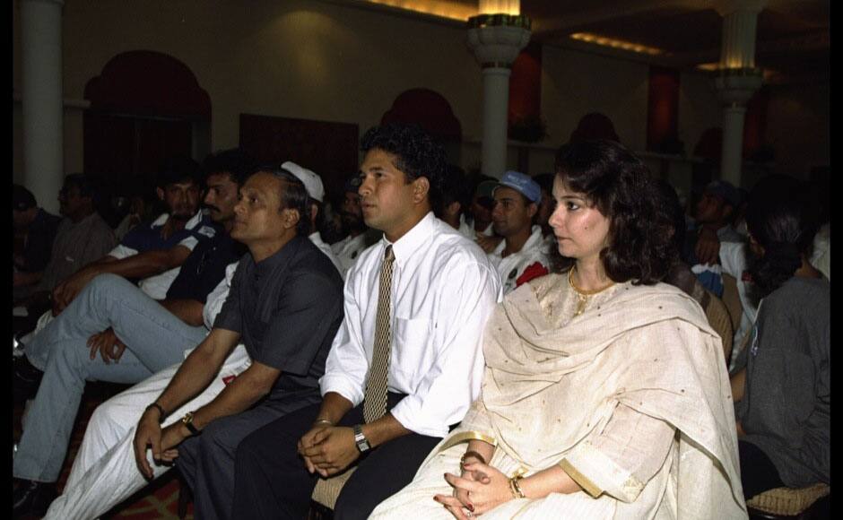 2 Feb 1996: Sachin Tendulkar with his wife during the cricket world cup in Bombay, India[/caption] [caption id=“attachment_724043” align=“alignleft” width=“940”]