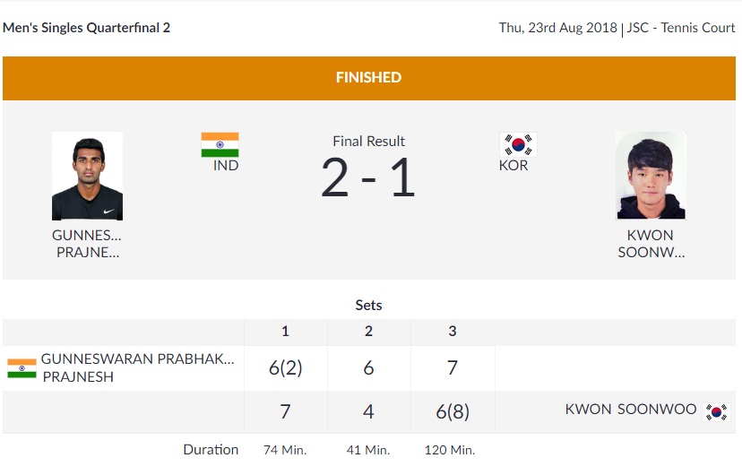 India’s Ankita Raina hits a return during the 2018 Asian Game. AFP[/caption] “Shooting is life for me,” said the former World Cup gold-medallist, who was laid low by an elbow injury after a gold medal in the 2014 Commonwealth Games in Glasgow. In Jakarta, four bronze medals were settled for in wushu and though not one Indian in the fray made the finals, it would still go down as the low-profile sport’s best ever performance, in terms of number of medals won, in the Asian Games. Roshibina Devi (women’s 60kg), Santosh Kumar (men’s 56kg) Surya Bhanu Pratap (men’s 60kg) and Narender Grewal (men’s 65kg) lost their respective semifinal Sanda bouts but will go back home content after the stronger-than-expected showing. The previous best was a silver and a bronze in the 2010 Guangzhou Games. Two tennis medals were also guaranteed with Ankita Raina and the top-seeded paring of Rohan Bopanna and Divij Sharan progressing to the semifinals of their respective events. World number 189 Raina dispatched Hong Kong’s Eudice Chong 6-4, 6-1 to enter the last four of the women’s singles. Bopanna and Sharan, who don’t have much experience of playing together, came up with a solid performance against the seasoned pairing of Yang Hsieh and Yang Tsung-Hua of Chinese Taipei to win 6-3, 5-7, 10-1. In Jakarta, the Indian men’s hockey team recorded its biggest ever international win by annihilating Hong Kong China 26-0 in a Pool B match. India bettered an 86-year-old record – a 24-1 win over the USA in the Olympics. The rowers also continued their good show and qualified for the final round in three more events. Rohit Kumar and Bhagwan Singh finished on top in men’s lightweight double sculls repechage round with a time of 7:14.23s to qualify for the final race to be held on August 24. In the women’s four repechage round, the Indian quartet of Sanjita Dung Dung, Annu, Navneet Kaur and Yamini Singh finished fourth with a time of 7:53.29s but still made it to the final to be held on August 24. The men’s lightweight eight team was the last to compete and qualified for the final race by coming on top with a time of 6:15.62. The final will be held on August 24. The Indian women’s compound archery team qualified second for the quarterfinals, pipped by powerhouse Korea in the ranking round. India were already through to the quarters with a first-round bye and today’s round only decided the placement of the teams in the draw based on their rankings. India ended up in the bottom half with Korea in the upper half. But just as any other day, today was not without its share of heartbreaks and disappointments. Star gymnast Dipa Karmakar had to withdraw from the artistic team finals due to the knee injury, which had threatened to end her career not so long back. The team, which missed her, ended seventh in the final. After the high of two gold and a bronze medal in the freestyle competition, India endured a disappointing end to their wrestling campaign with Greco-Roman grappler Harpreet Singh losing his bronze medal bout. Harpreet (87kg) lost 3-6 to Kazakhstan’s Azamat Kustubayev. Harpreet was India’s lone podium hope after Gurpreet Singh (77kg), Naveen (130kg) and Hardeep (97) failed to reach the medal round. The Indian men’s volleyball team suffered its first loss of the Games, going down 0-3 to Qatar in a preliminary Pool F match. India lost 15-25, 20-25, 20-25 in 77 minutes. In taekwando, Navjeet Maan crashed out in the pre-quarterfinals of the 80 kg, ending the Indian men’s campaign. The 24-year-old Maan lost 6-20 to Linglong Chen of China. With inputs from PTI