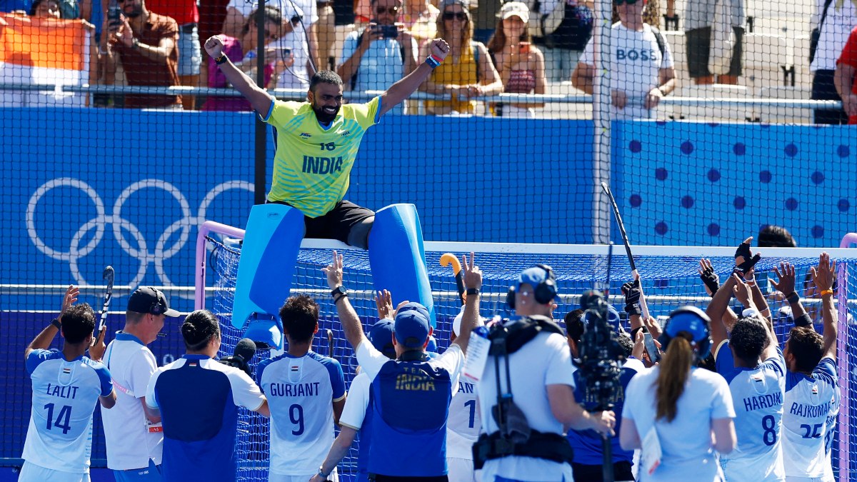Watch | Sreejesh signs off with iconic goalpost celebration; Harmanpreet lifts goalkeeper on his shoulders
