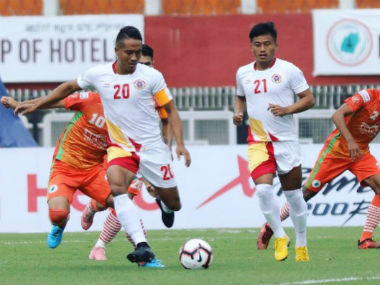 Imphal: The visiting East Bengal notched a comfortable 2-0 win over NEROCA FC in an I-League game on Saturday, with Mexican recruit Enrique Esqueda scoring both the goals. [caption id=“attachment_5458581” align=“alignleft” width=“380”]  East Bengal players in action against NEROCA in their I-League fixture. I-League.[/caption] The match saw the home side dominate possession but their opponents always looked in control, particularly following Esqueda’s early strike in the 10th minute. Esqueda doubled the lead through a penalty in early second-half to seal the deal for the Kolkata giants at the Khuman Lampak Main Stadium. The game gave enough evidence of the quality the two sides possess but the day belonged to East Bengal who logged full points in what was a satisfactory result for newly appointed Spanish coach Alejandro Menendez Garcia. The home team incidentally also had a new Spanish coach and Manuel Fraile opted to start with a flat 4-4-2 formation. With Subash Singh and Nigerian Felix Chidi up front, Japanese Katsumi Yusa was left to lead the attack from midfield against his former club. Australian Aryn Williams was supposed to play as the holding midfielder but ended up playing deeper than one thought. Italian Mauro Boerchio debuted for NEROCA under the woodwork instead of the veteran Lalit Thapa. East Bengal had Jobby Justin and Esqueda ahead of him as target men and played attacking wingers in the two Raltes, Laldanmawia and Lalrindika to begin proceedings. Rakshit Dagar was the pick in goal and ahead of him was a solid back four represented by Spaniards Borja and Costa Rican World Cupper Johnny Acosta with Kamalpreet and a brilliant Lalramchulova completing the lineup. Impressive under-22 youngster Yami Longwah played the role of a linkman. Esqueda stamped his class on the I-League early with a classy finish. Off a long throw from wing-back Manoj Mohammad into the box from the left flank, Aryn Williams tried to head clear but his effort only managed to find Esqueda in the middle of the box. The Mexican brought it down with his chest beautifully, turned and nailed a right footer on the bounce over an outstretched Boerchio in the NEROCA goal. With the hosts down early, the otherwise quality game saw some needless frayed tempers. Katsumi was clearly the target of some needle and in all three players including Eduardo Ferriera, Singham Subash and Manoj got themselves booked in the three flare-ups which happened across the two-halves. The home team lost Katsumi to injury just before the end of the first half to further dent their plans. NEROCA had the lion’s share of possession through the game but could not create enough clear chances. Midfielder Malemngamba Meetei was guilty of missing their best chance in the 25th minute when, off a wonderful ball by Katsumi out to the left flank, Singham Subash floated a cross which Rakshit Dagar in the East Bengal goal made heavy weather of. Malemn, on the rebound, with the goalkeeper down and out, essayed a feeble effort which was saved on the goalline by Yami Longwah.