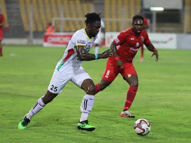 TRAU FC are now placed eighth with 11 points from eight games. Twitter @ILeagueOfficial[/caption] TRAU FC drew first blood in the 15th minute through a Gerard Williams header. Churchill Brothers FC restored parity in the 30th minute through Abu Bakr’s header from a corner set-piece but the home side lost the match due to an own goal through custodian Jafar Mondal’s faulty clearance. TRAU FC are now placed eighth with 11 points from eight games, while Churchill Brothers remain third with 10 points from six games. Playing their second game in Goa within seven days, TRAU FC, riding on a four-game unbeaten run, started on an attacking note as expected. The I-League debutants earned a corner within the first 20 seconds but failed to make the most from the opportunity. TRAU took a second attempt and on target, this time in the third minute, but a good save from Churchill’s Jaffar Mondal ensured the home side were not embarrassed early in the game. The visitors, however, did not give up and their attacking line of Naocha, Emeka and Krishnanada kept the Churchill defence on their toes at regular intervals. TRAU’s constant efforts soon resulted in drawing first blood in the 15th minute. A short corner followed by a cross to the far post by TRAU’s Meitei saw Williams make no mistake in finding the back of the net through a close-range effort, giving the visitors an early 1-0 lead. Rattled by TRAU’s early lead, Churchill tried making a comeback but their efforts were thwarted by a disciplined defence line of the visitors. They increased the pace of their attack from the 20th minute onwards and looked more organised. Churchill restored parity in the 30th minute when an error from TRAU’s Mithun Samanta let the ball roll into the goal from a header from Abu Bakar from a corner. The game thereafter was a mix of efforts from both ends but it was the visitors who ruled the pitch in the first half that came to an end with the scoreline reading 1-1. The second half started with TRAU again pressing hard to take a lead. Their efforts soon yielded results but because of a glaring error from Churchill goalkeeper Jafar Mondal who in an effort to clear the ball from a Meitei corner kick, ended up punching the ball inside his own goal in the 54th minute. The game thereafter saw TRAU leading most of the attack while the home side seemed helpless in their attempts to earn an equaliser. The TRAU defence played a key role, clipping Churchill’s Willis Plaza and not giving him one clear opportunity in the whole game. The Manipur side kept on with their efforts to increase their lead but could not convert the chances that came their way.