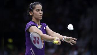 Saina Nehwal serves while playing against Netherlands' Yao Jie, unseen, at a women's singles badminton match. Saurabh Das/AP