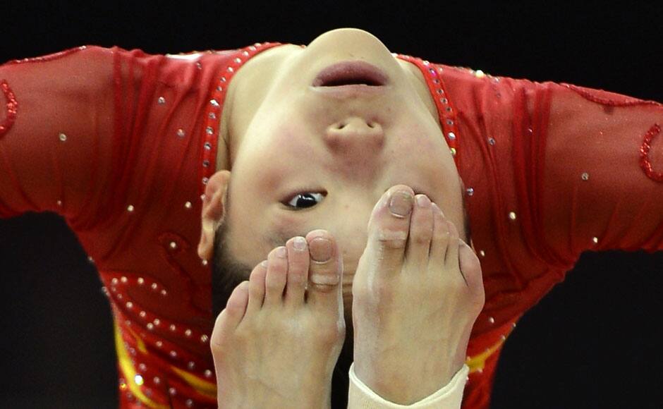 Speechless or maybe boneless. Huang Qiushuang of China attends a gymnastics training session at the North Greenwich Arena. Reuters[/caption] [caption id=“attachment_393665” align=“alignleft” width=“940”]