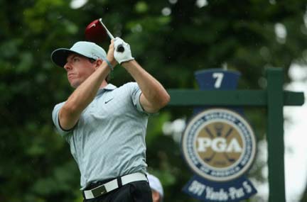 Rory McIlroy is in the lead at yet another major. AFP[/caption] Four-times winner Tiger Woods, however, ended a miserable week prematurely when he missed the cut at a major for only the fourth time as a professional, looking tournament rusty in both rounds as he carded successive 74s. McIlroy squandered a golden opportunity to add another eagle at the par-five seventh, where he hit a brilliant second shot from 243 yards to eight feet before missing the putt, but signed off with a birdie at the ninth where he drained a 16-footer. “I played well for the most part,” world number one McIlroy told reporters after moving a step closer to winning the fourth major title of his career. “Scored really well. Some key up-and-downs to keep the momentum going in the round. “I’m very pleased. I’m in a great position going into the weekend in another major championship. Can’t ask for much more. I’m confident, and I’m just on a good run. “You’ve seen before when I got on good runs like this, I can sort of keep it going for a little while,” said the Northern Irishman, who won last month’s British Open before clinching the WGC-Bridgestone Invitational last Sunday in his next start. McIlroy ended his round one ahead of Australian Jason Day, who fired a best-of-the-day 65, and veteran American Jim Furyk (68). Americans Rickie Fowler (66) and Ryan Palmer (70), and Finland’s Mikko Ilonen (68) were a further stroke back. Five-times major winner Phil Mickelson (67) was next best on a high-quality leaderboard, level at six under with Austrian Bernd Wiesberger (68). England’s former world number one Lee Westwood (72), fourth-ranked Swede Henrik Stenson (71) and American Steve Stricker (68) were among a group of seven players knotted at five under. CONSUMMATE DISPLAY McIlroy, however, commanded the spotlight as he lived up to his pre-tournament billing with another consummate display in the more difficult playing conditions of the morning. Initially struggling for accuracy off the tee, he dropped a shot at the par-four 12th where he found a bunker with his approach, but swiftly responded by sinking a 12-footer at the 13th and a 16-footer at the 15th to get to six under. Though the 25-year-old Northern Irishman squandered another birdie chance at the 16th, where he missed an eight-foot putt, he reached the turn in sizzling style with his eagle on 18. McIlroy dropped another shot at the par-four second, where his tee shot ended up in the rough and his second in a bunker, but maintained his grip on the tournament with two birdies in his last three holes. Day, among the late starters on Friday, surged into contention for his first major title with birdies on his last two holes, having earlier eagled the par-five seventh. “I think we got a little lucky on the draw, teeing off in the afternoon,” said the 26-year-old from Queensland. “We didn’t get as much rain. I played great. “A little disappointed that I had one bogey on the back nine but I came home strong with birdies on 17 and 18.” The cut fell at one-over par, leaving Woods well out of the picture after he finished at six over. Tournament rusty after having surgery in late March to treat a pinched nerve in his back, Woods struggled to an opening 74 on Thursday and he tumbled further backwards by dropping four shots in his first seven holes on Friday. Also missing the cut were U.S. Open champion Martin Kaymer of Germany and triple major winner Padraig Harrington of Ireland. Reuters